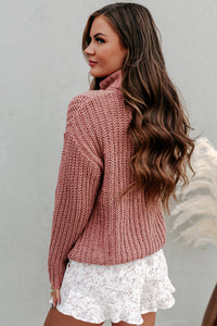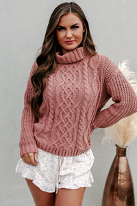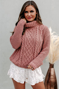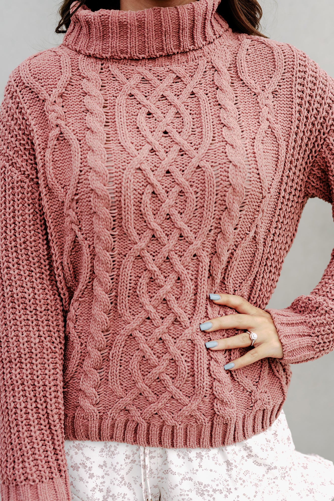 Stay Warm & Cozy All Season Long In This Mauve, Rolled Neck, Chenille, Cable Knit Sweater!