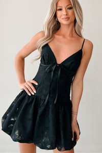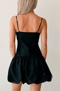 Bloom Brightly Floral Bubble Hem Mini Dress (Black)