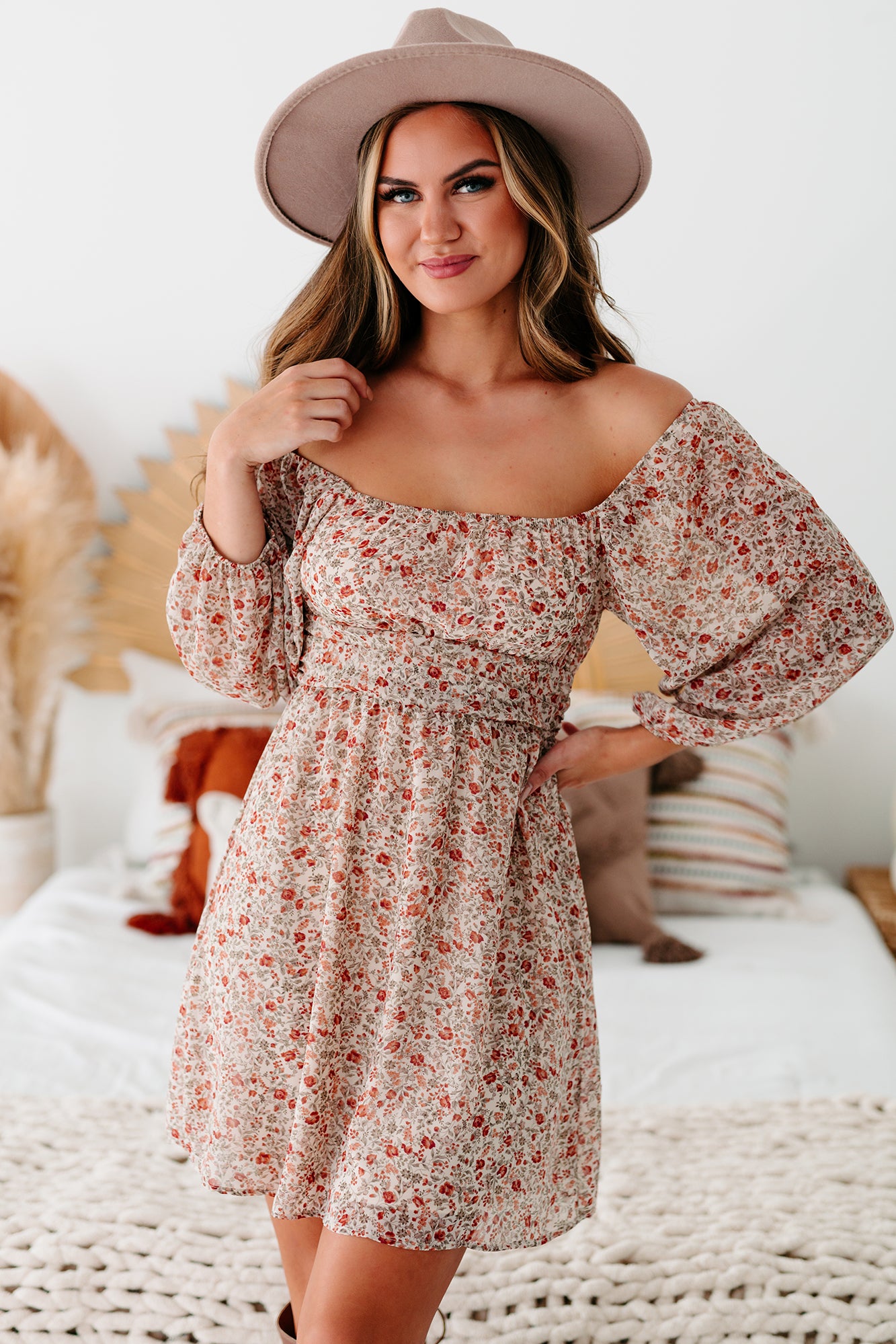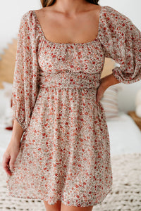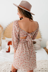 Bloom With Grace Floral Tie-Back Dress (Taupe/Rust Floral)