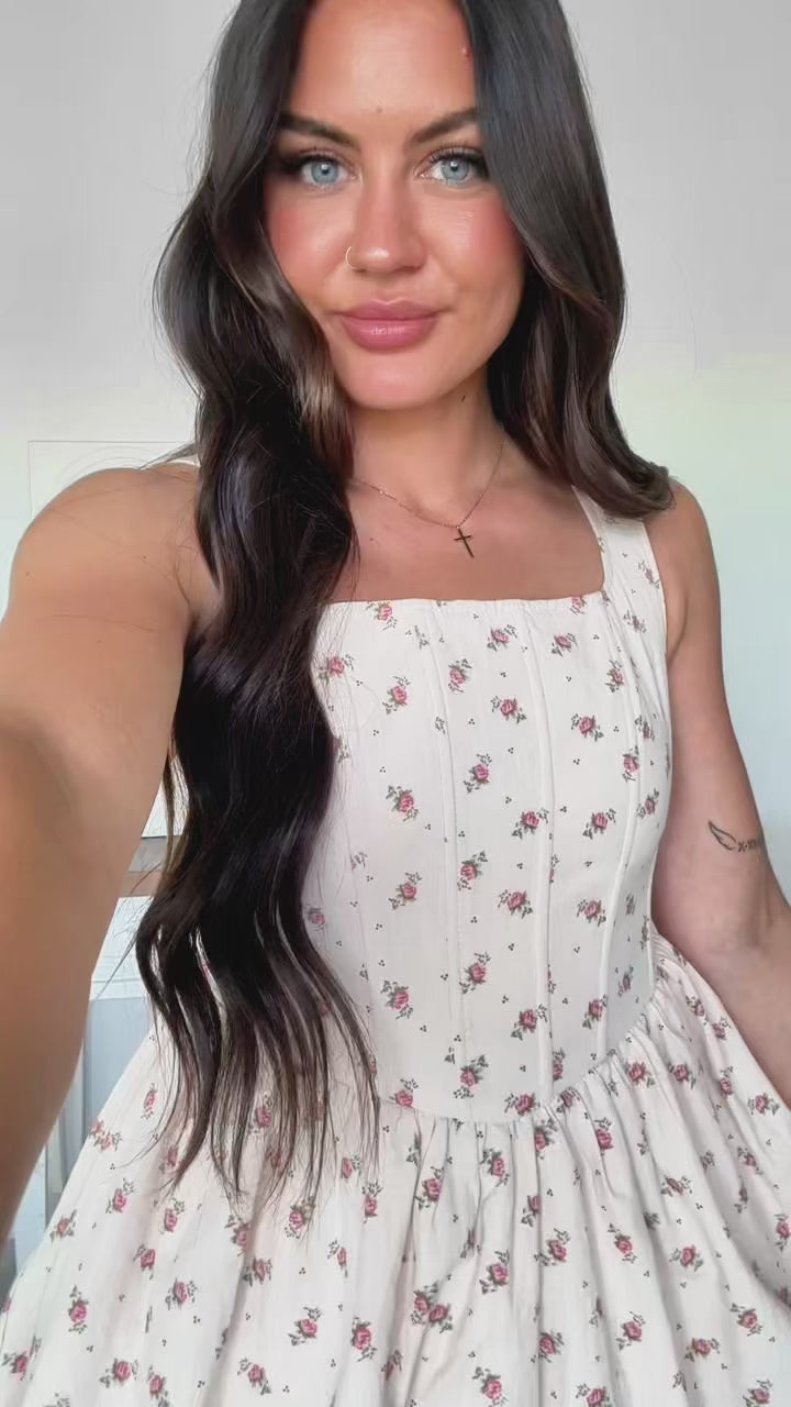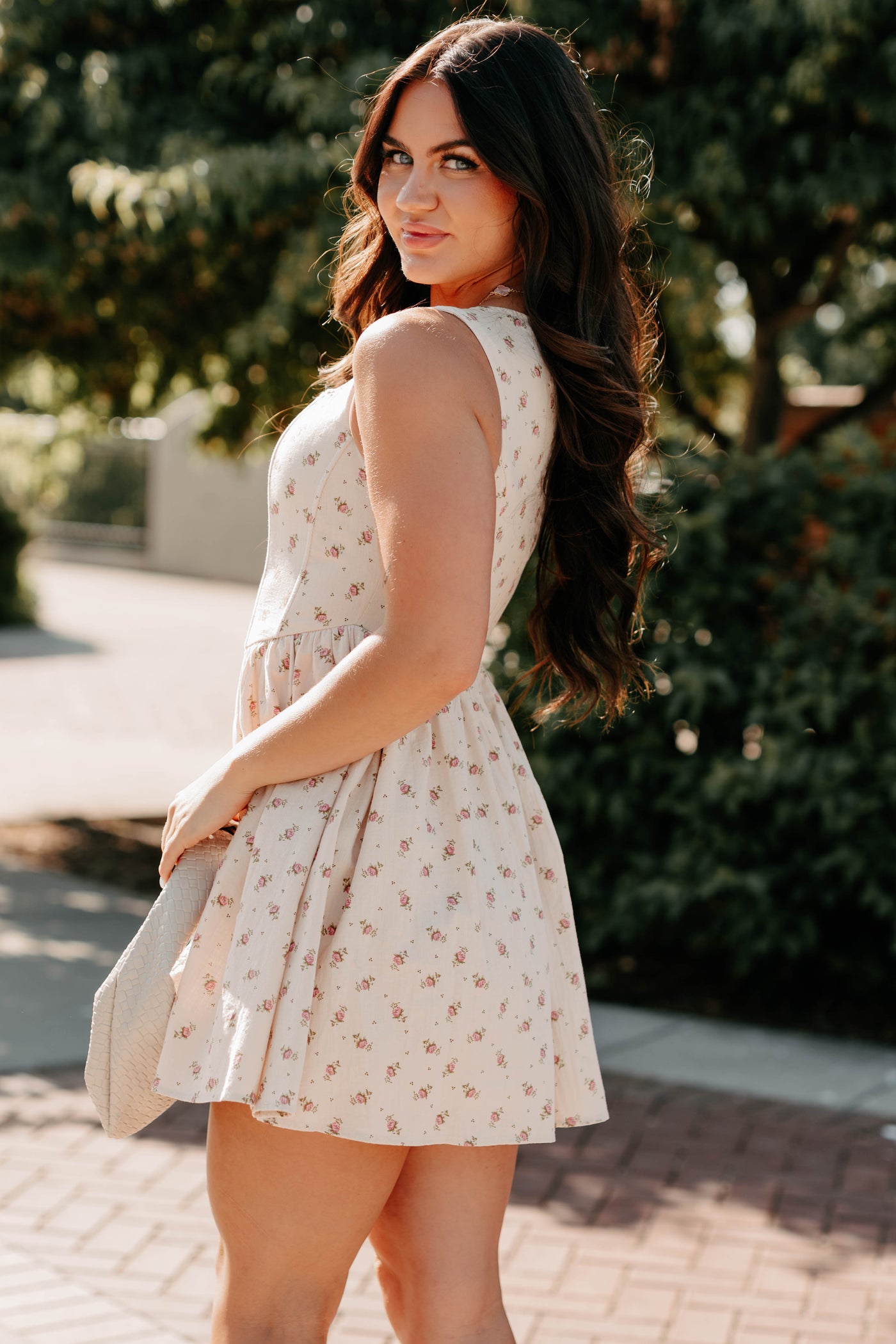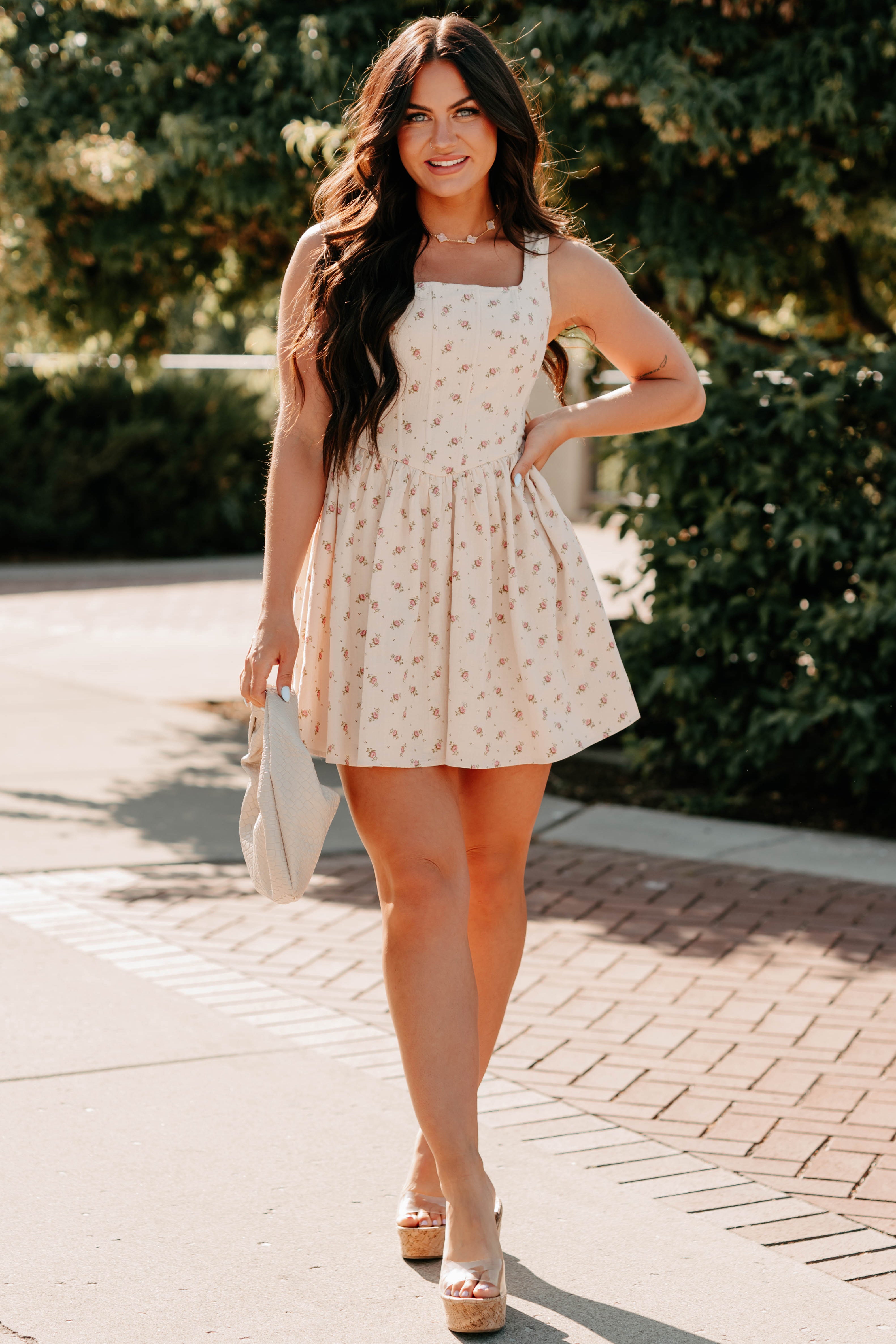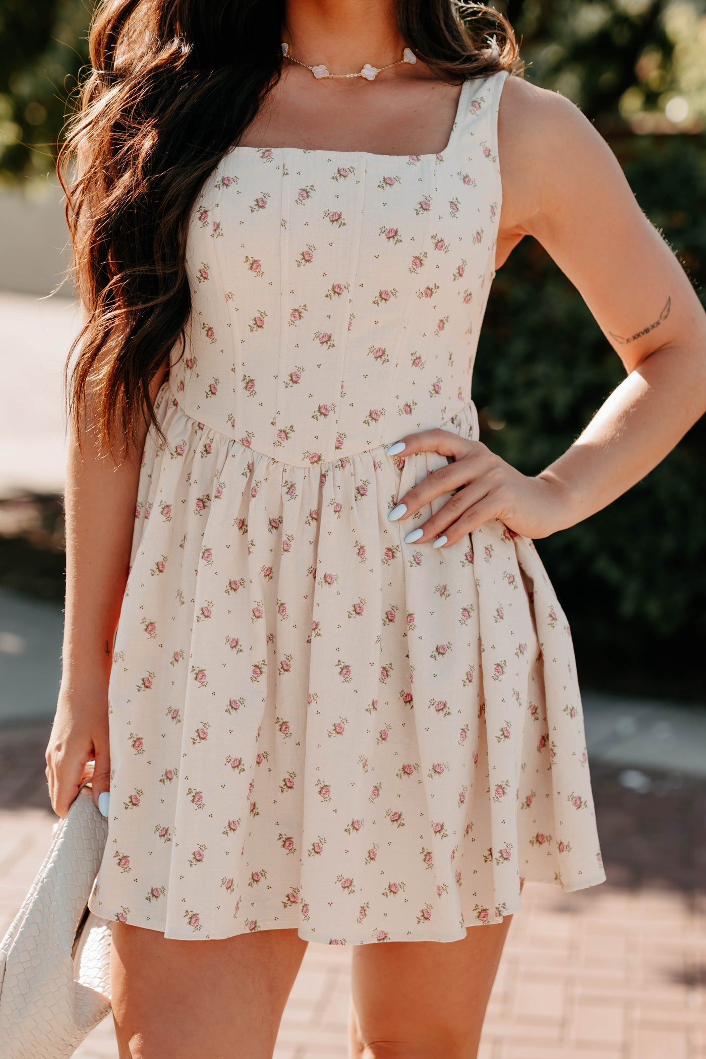 Blush Tells All Square Neck Floral Mini Dress (Natural)