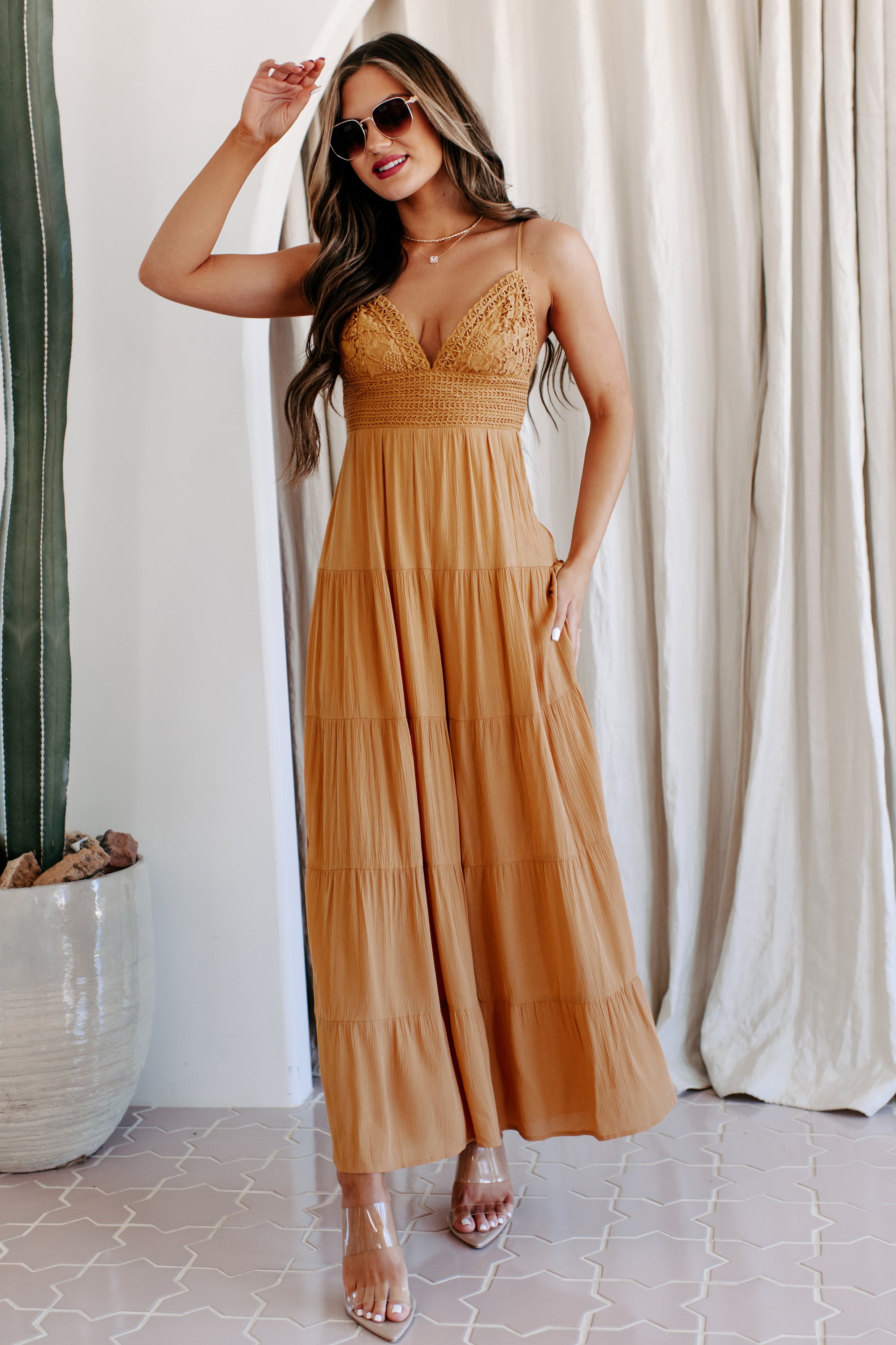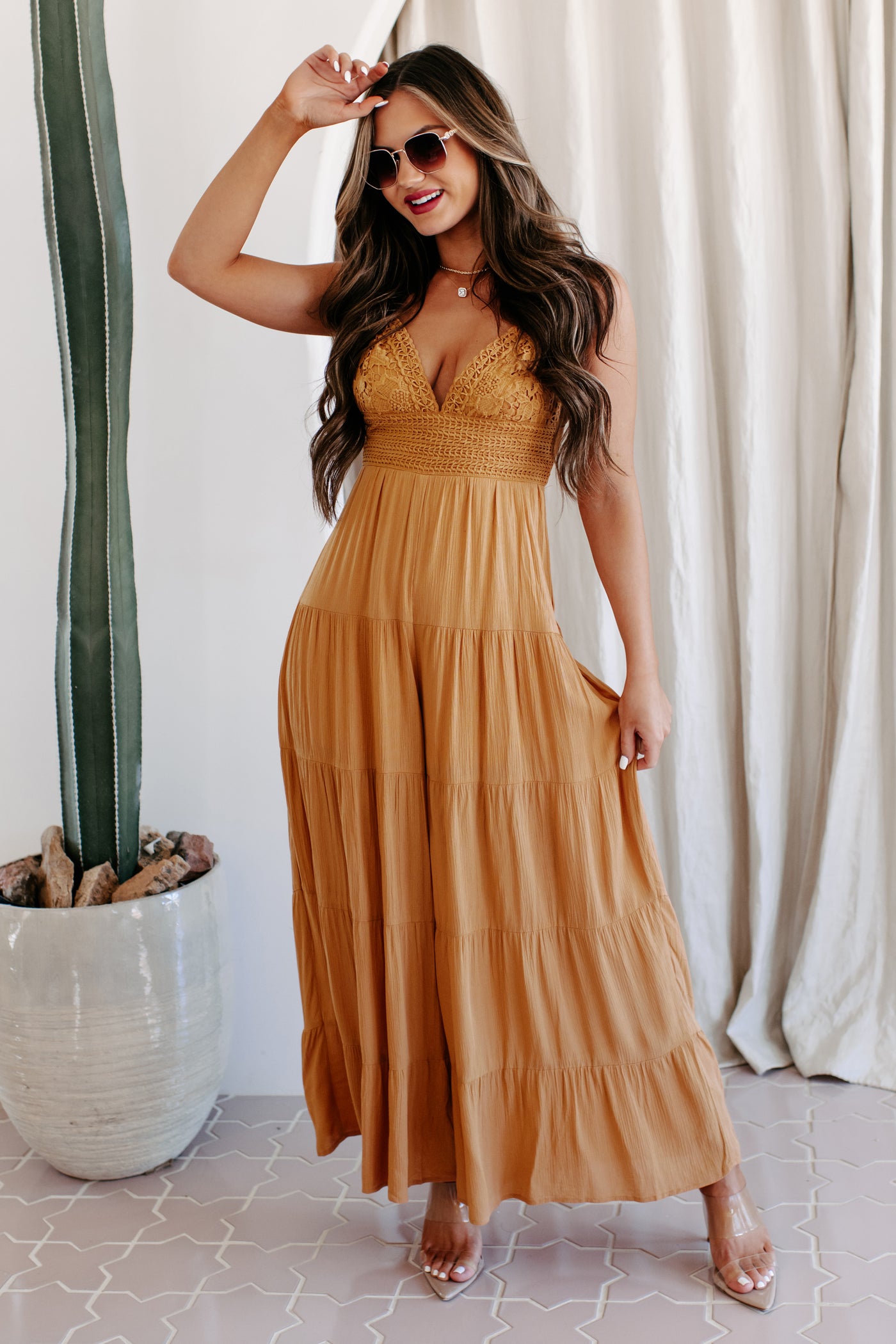 Boho Soul Crochet Lace Wide Leg Jumpsuit (Ginger) - NanaMacs