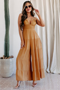 Boho Soul Crochet Lace Wide Leg Jumpsuit (Ginger)