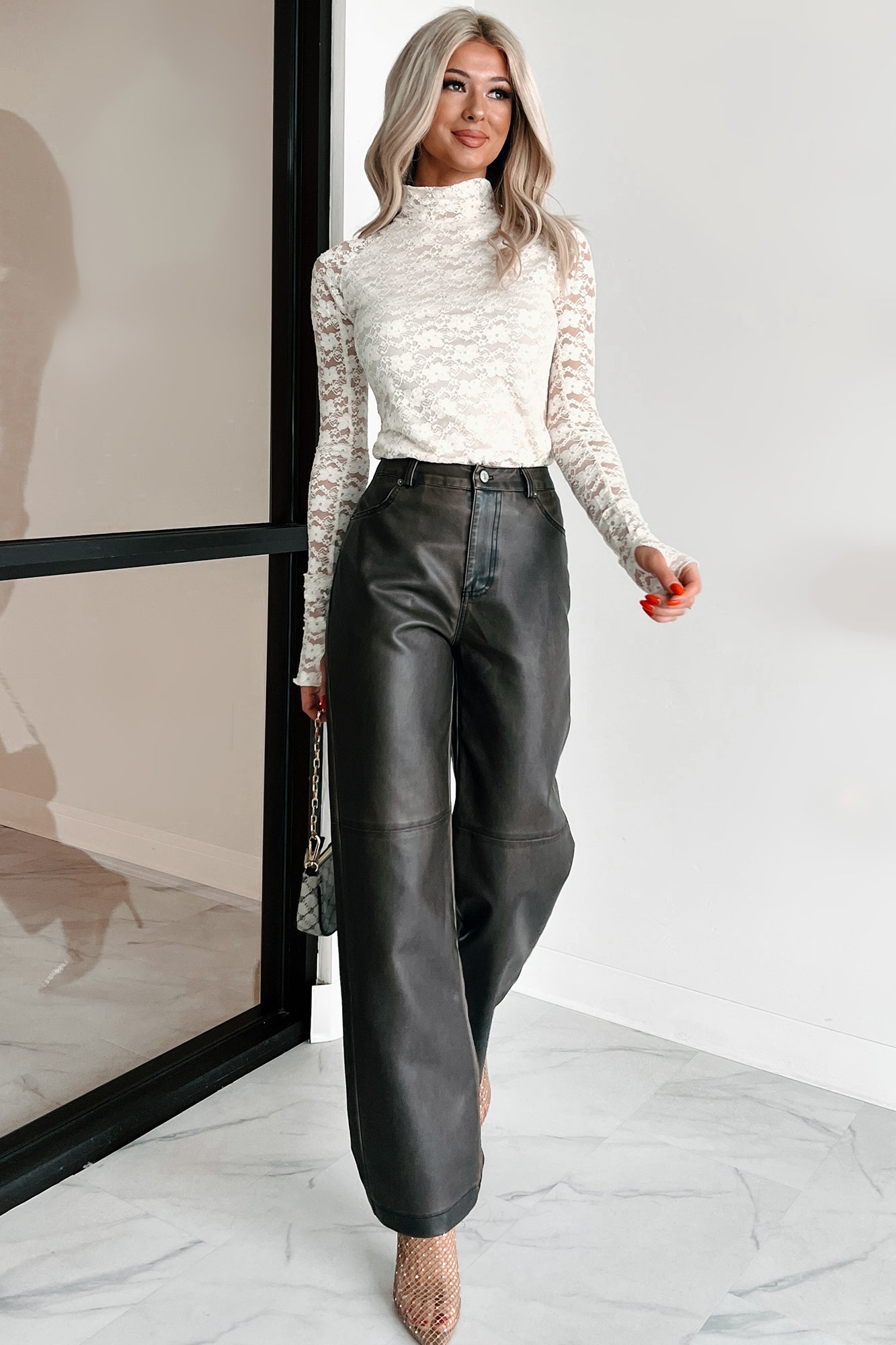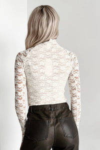 Boujee Beauty Rhinestone Lace Mock Neck Top (Cream)