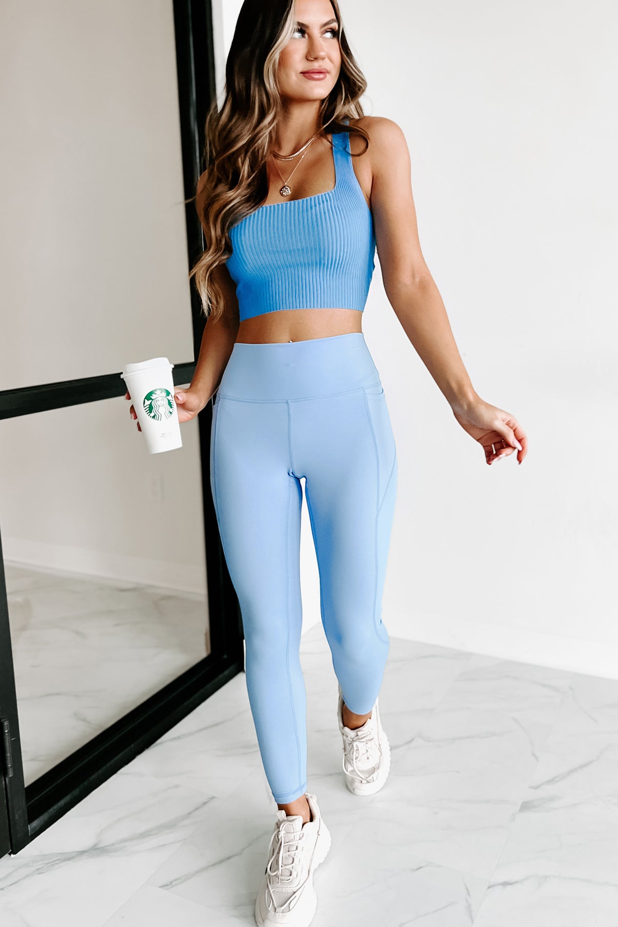 Brand New Chapter Criss-Cross Back Knit Crop Top (Blue) - NanaMacs