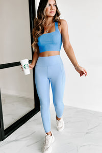 Brand New Chapter Criss-Cross Back Knit Crop Top (Blue)
