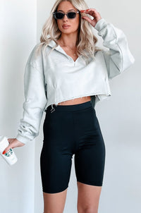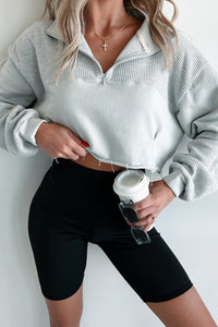Breezy Days Quarter Zip Cropped POL Top (Light Grey)