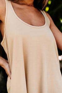 You'll Wear This Sand, Ribbed, U-Neck, Tunic Length, Tank Top So Many Ways!