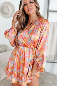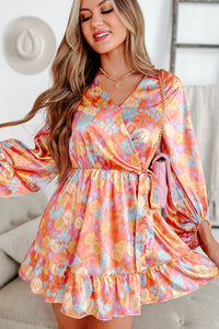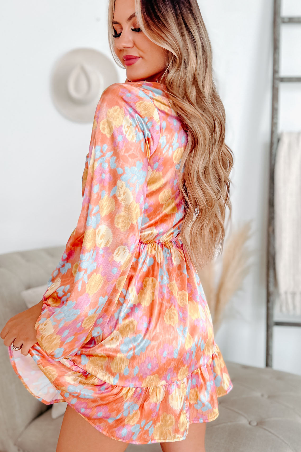 Bright Smiles Bubble Sleeve Floral Mini Dress (Orange Multi)