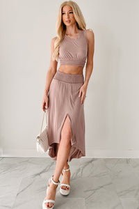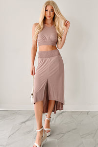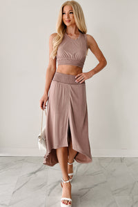 Bringing The Heat Smocked Hem Crop Top (Dark Taupe)