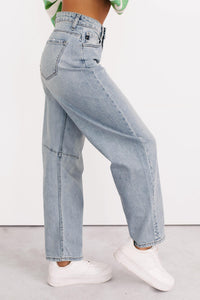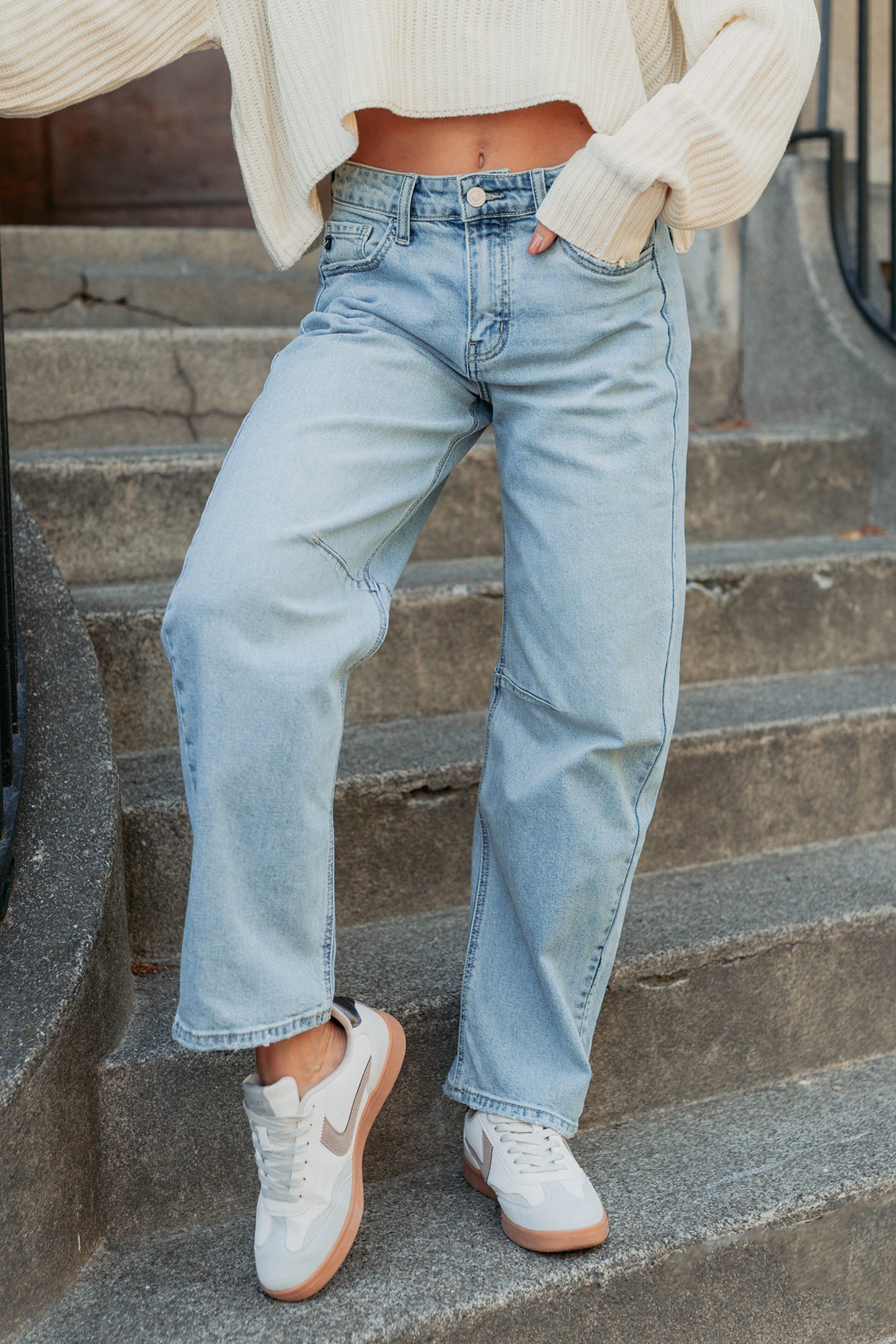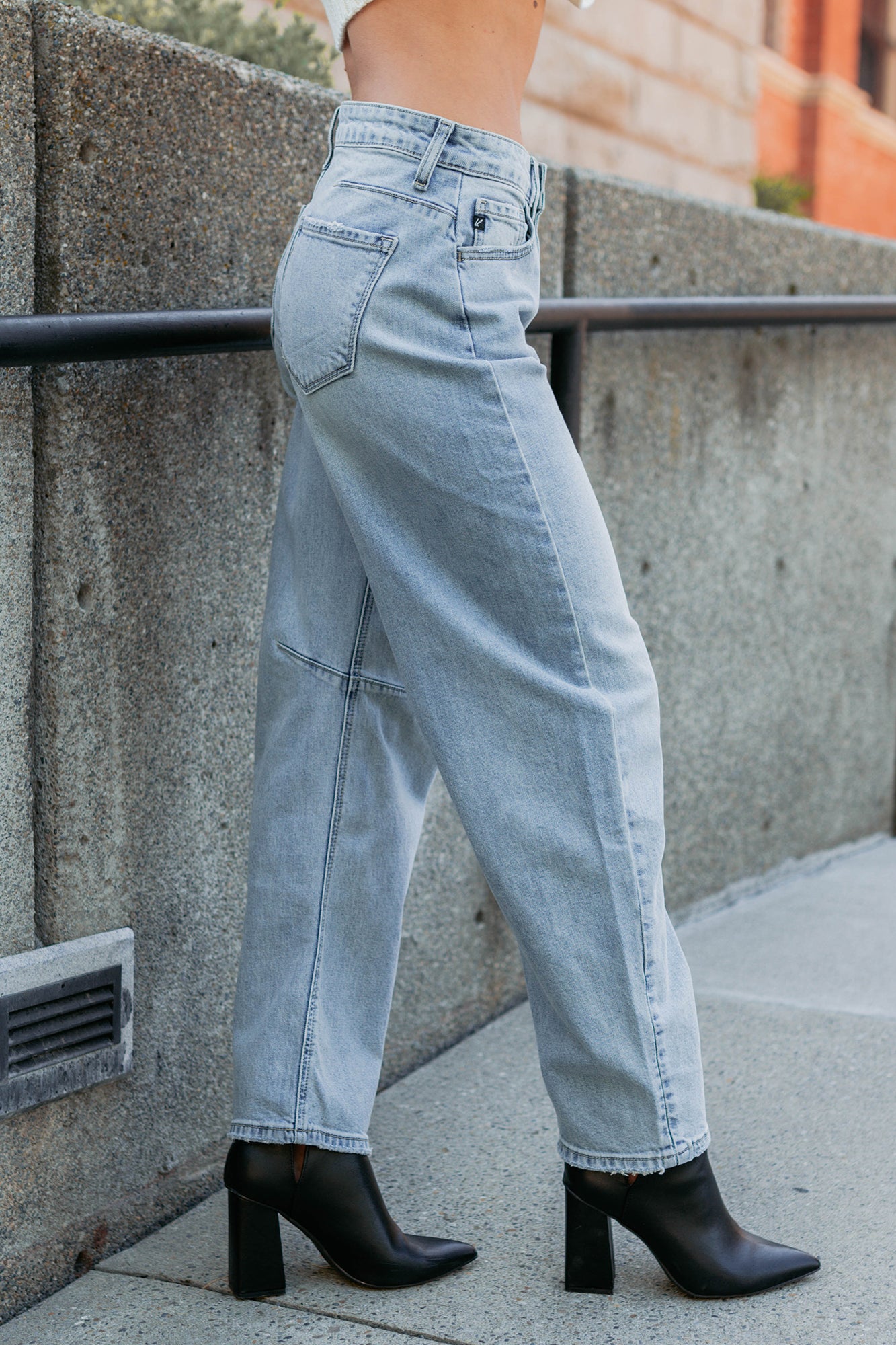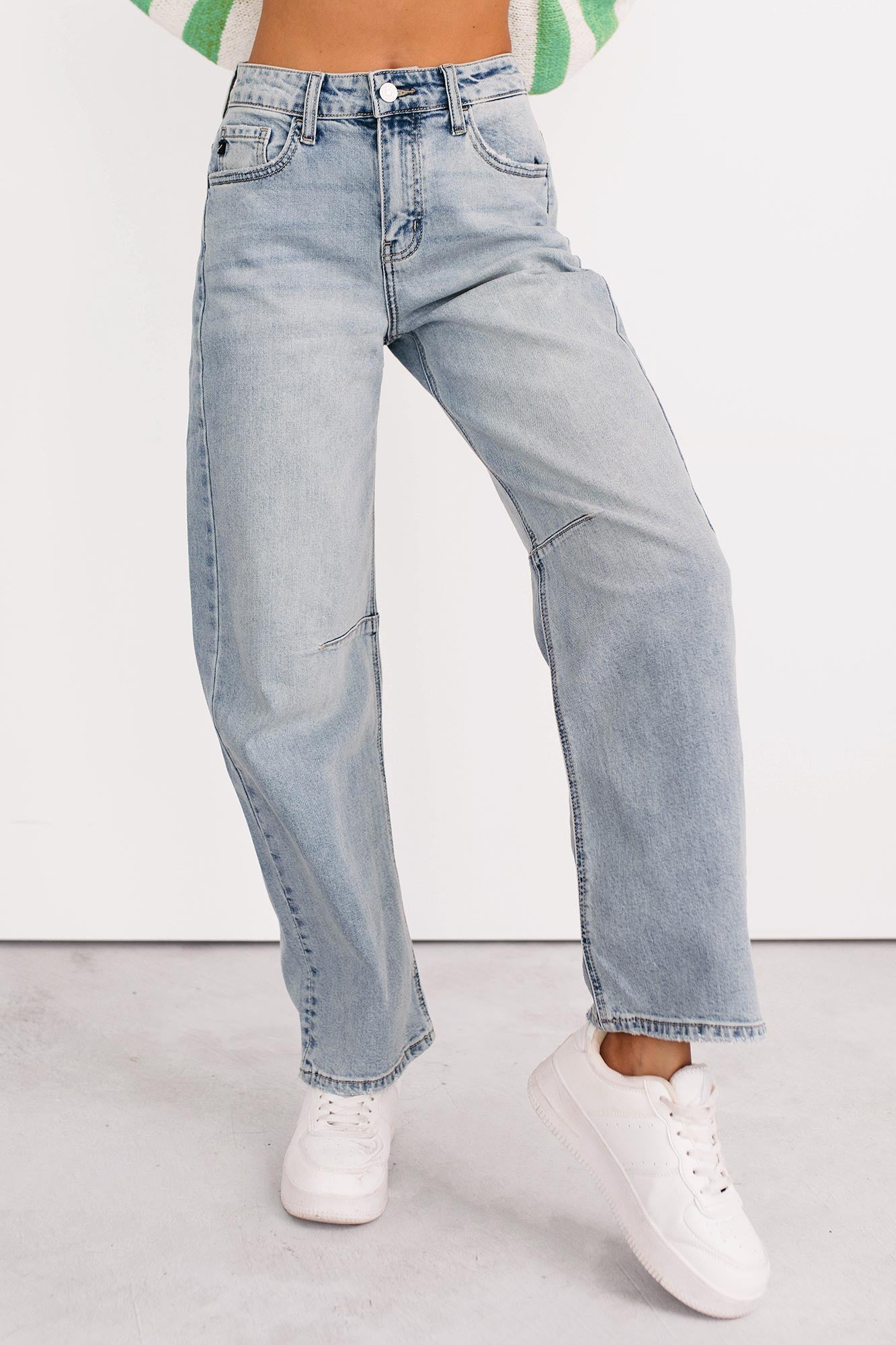 Brock High Rise Barrel Leg Kancan Jeans (Light) - NanaMacs
