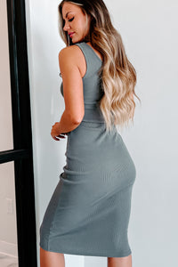 Brookie Ribbed Midi Dress (Charcoal) - NanaMacs