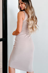 Brookie Ribbed Midi Dress (Taupe) - NanaMacs