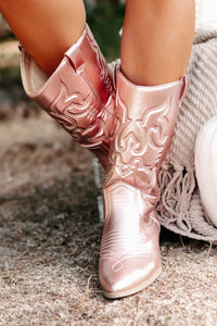 Buckle Babe Metallic Western Boots (Light Pink Metallic)