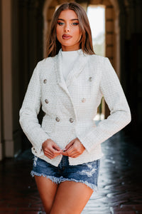 Business Mogul Tweed Blazer (Ivory/Silver)