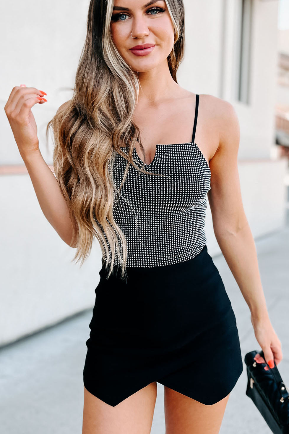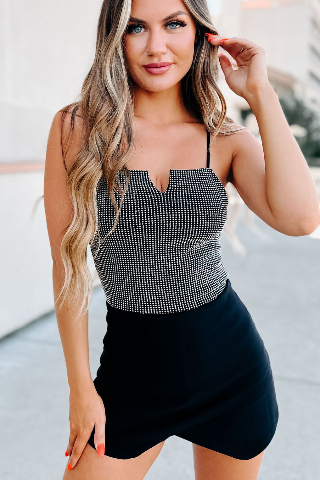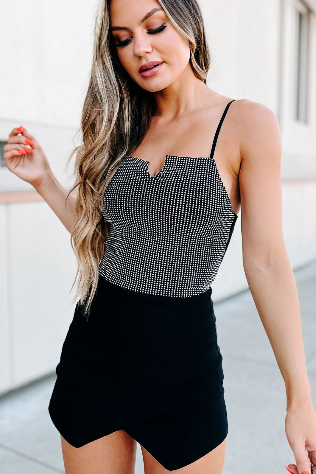 You're Sure To Dazzle In This Rhinestone Covered Bodysuit!