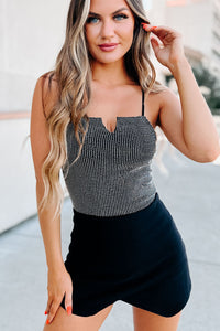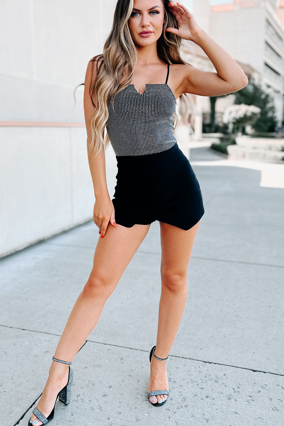 Buy Me Drinks Rhinestone Notch Bodysuit (Black) - NanaMacs