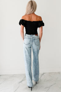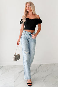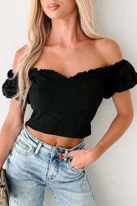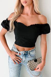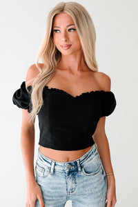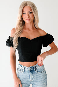 Call Me Cute Puff Sleeve Sweetheart Top (Black)