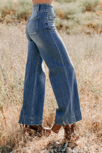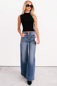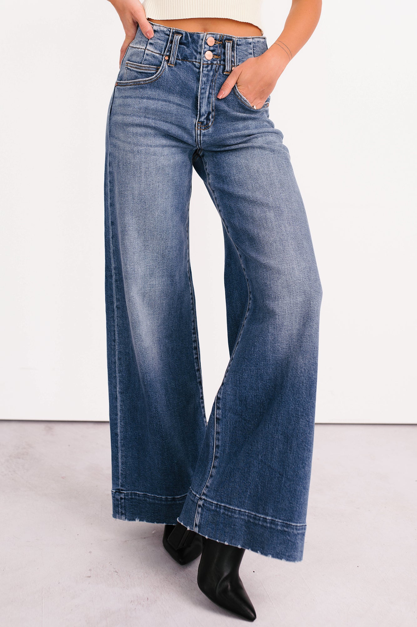 Calla Wide Leg High Rise Risen Jeans (Dark) - NanaMacs