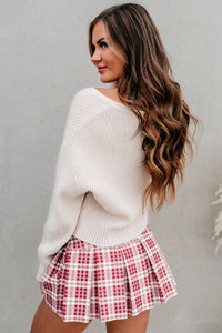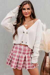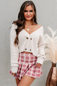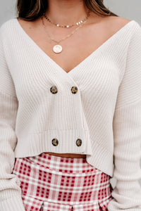 You Cannot Go Wrong With This Iconic Layer Piece! Double Breasted, Drop Shoulder Cropped Knit Cardigan In Beige!