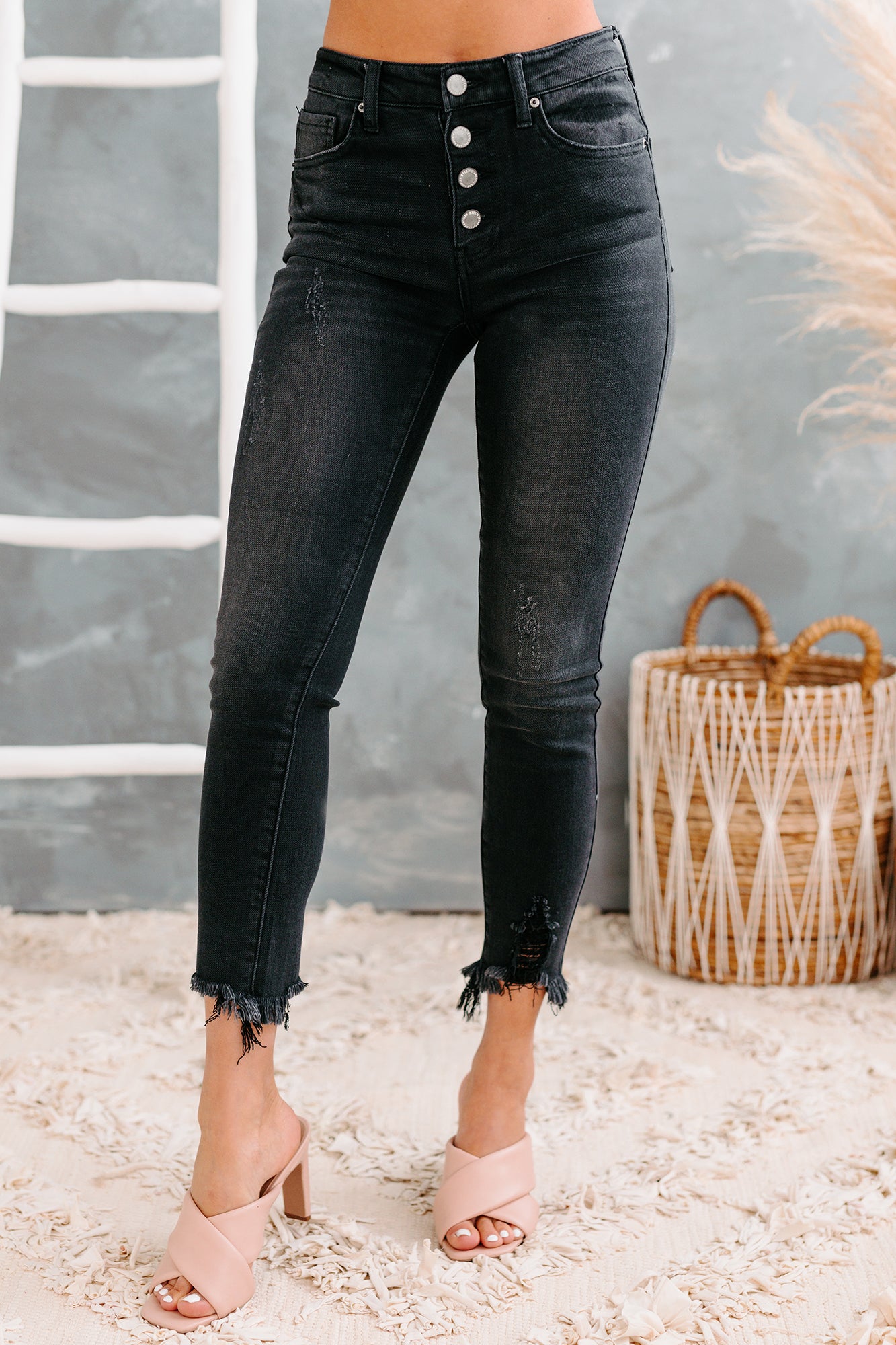 These Black, Mid-Rise, Button-Fly Raw Hem Skinny Jeans Will Be Your Obsession!