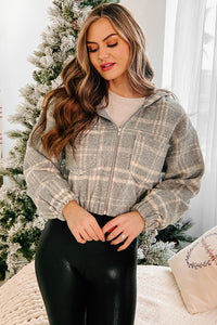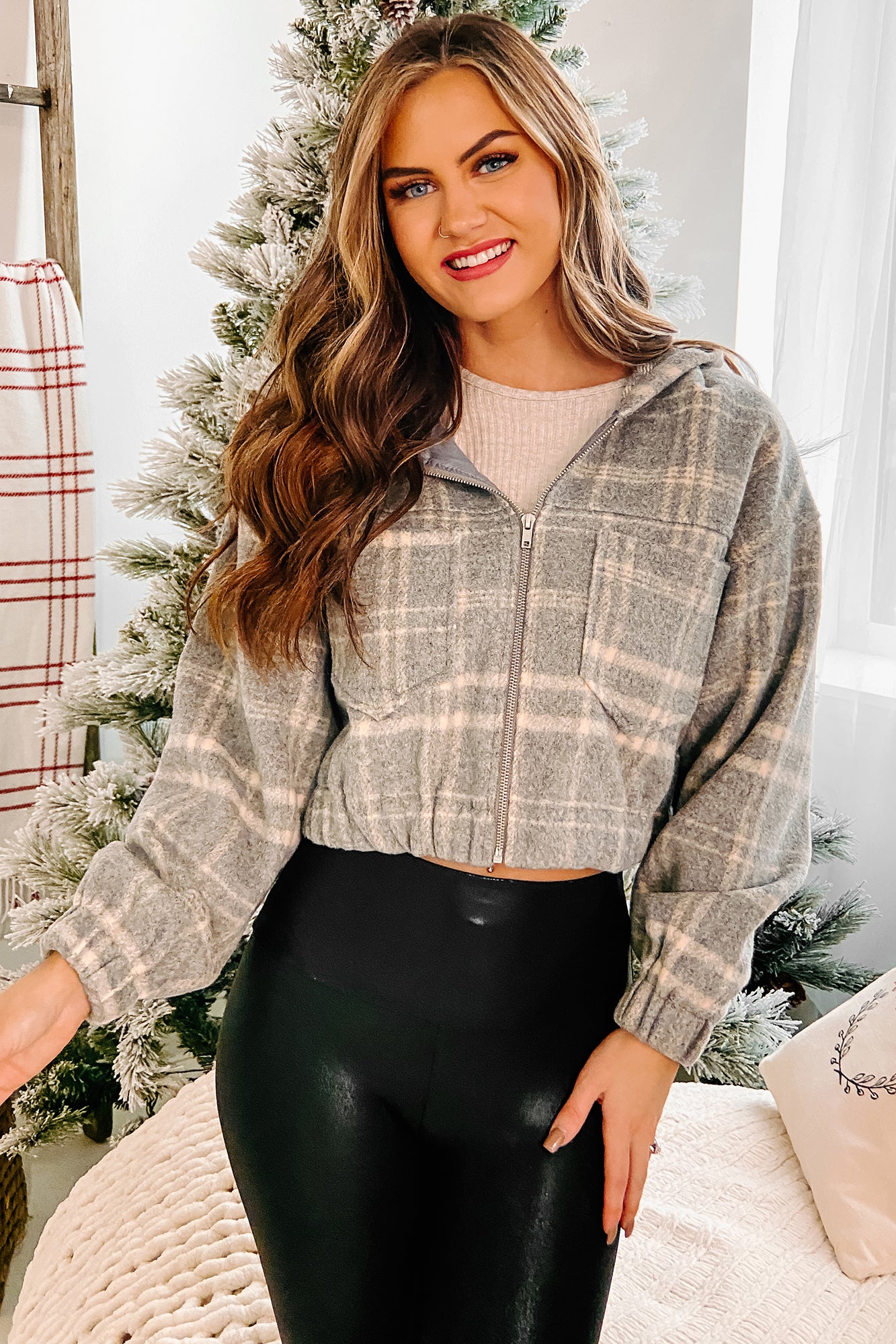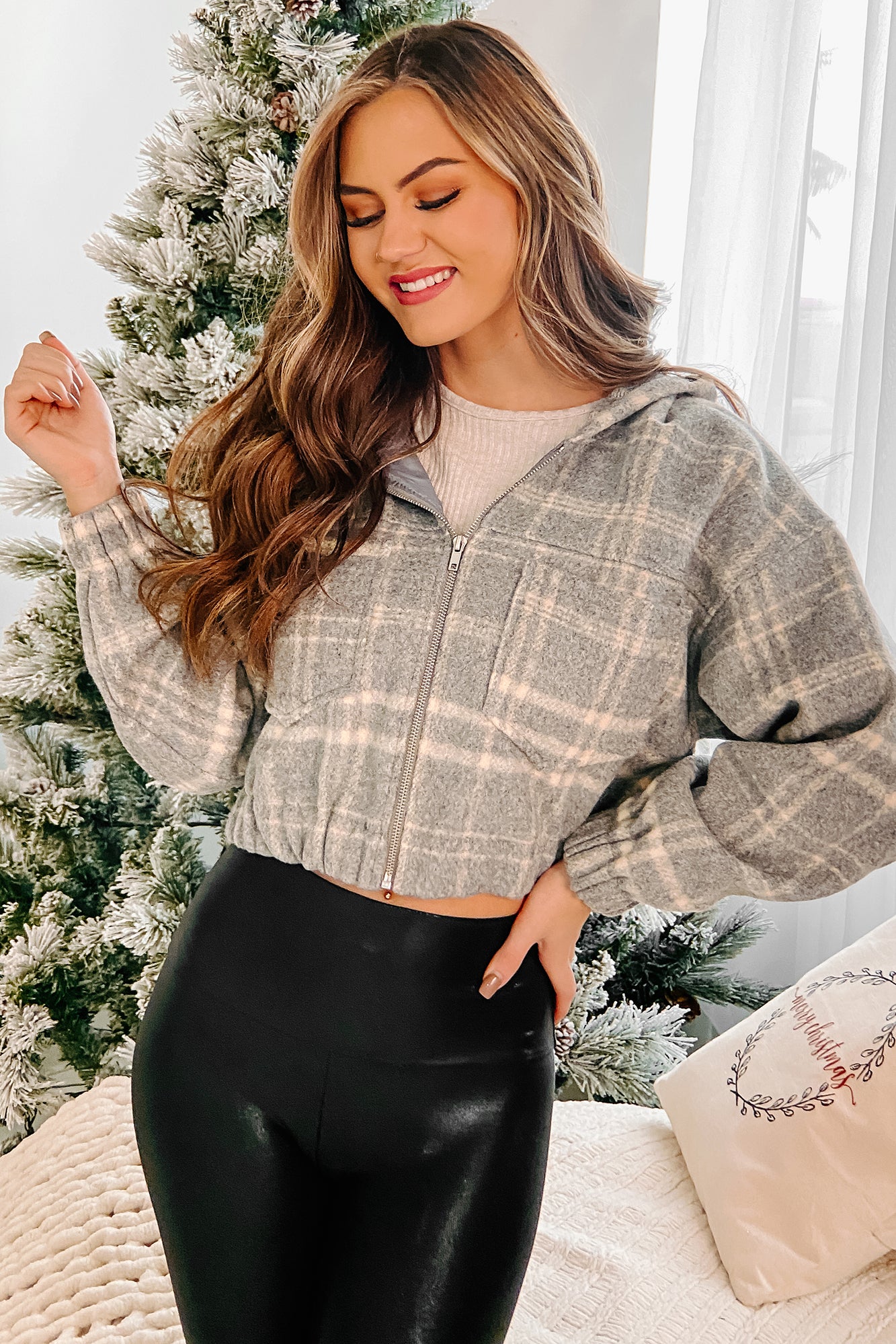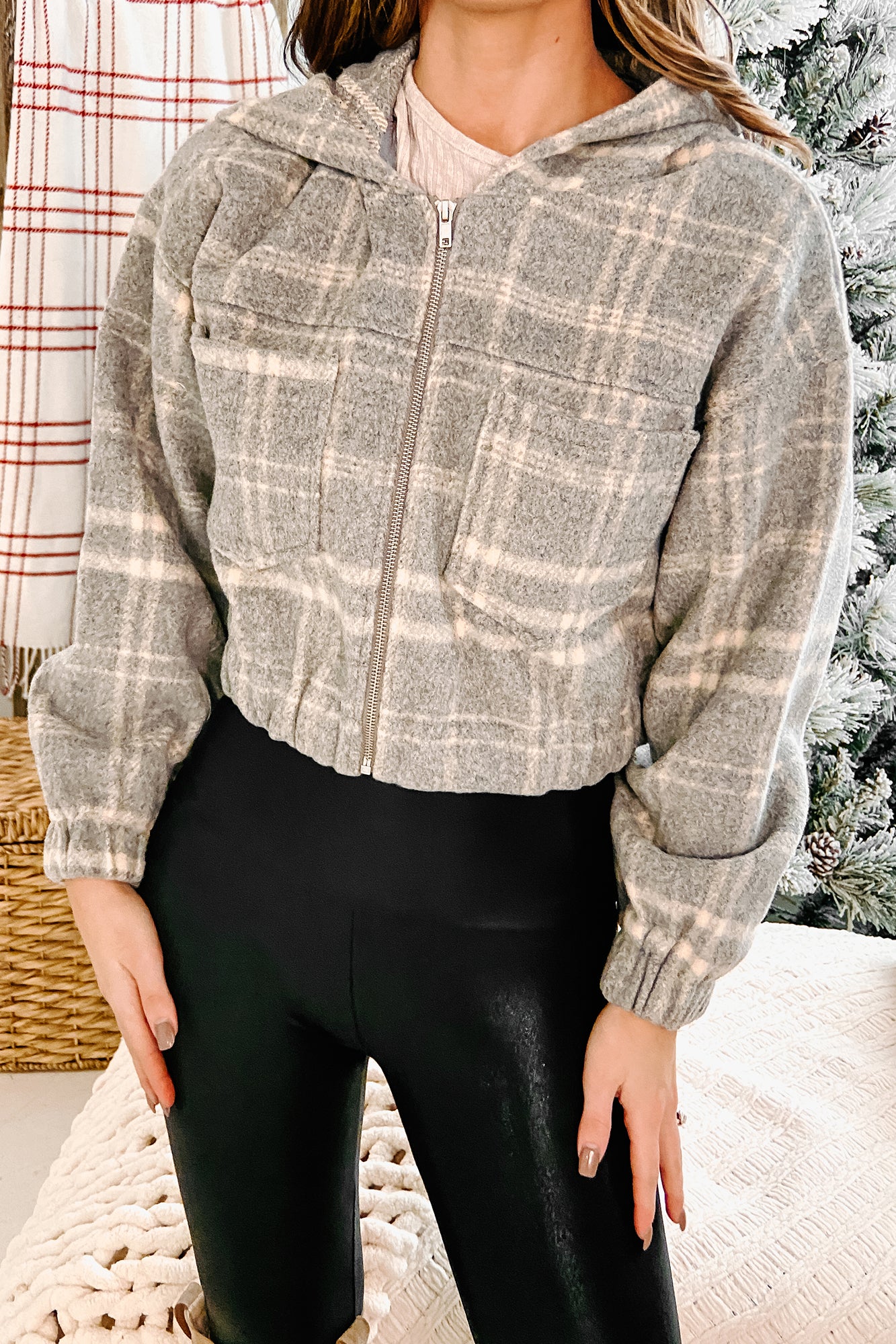 This Grey & Taupe, Hooded Plaid Jacket Will Be So Easy To Throw On Over A Casual Or Loungewear Outfit & Head Out The Door!