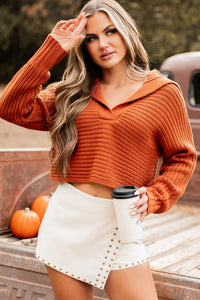 Can't Talk Right Now Collared Crop Sweater (Rust) - NanaMacs