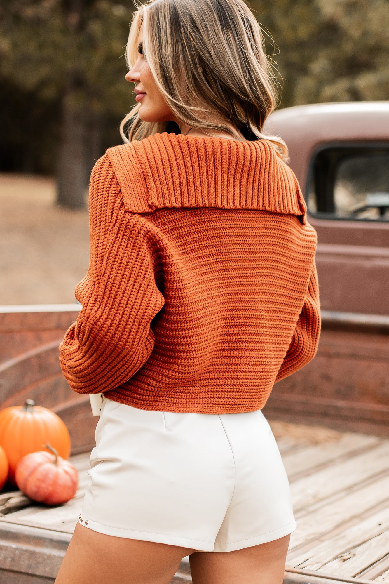 Can't Talk Right Now Collared Crop Sweater (Rust)