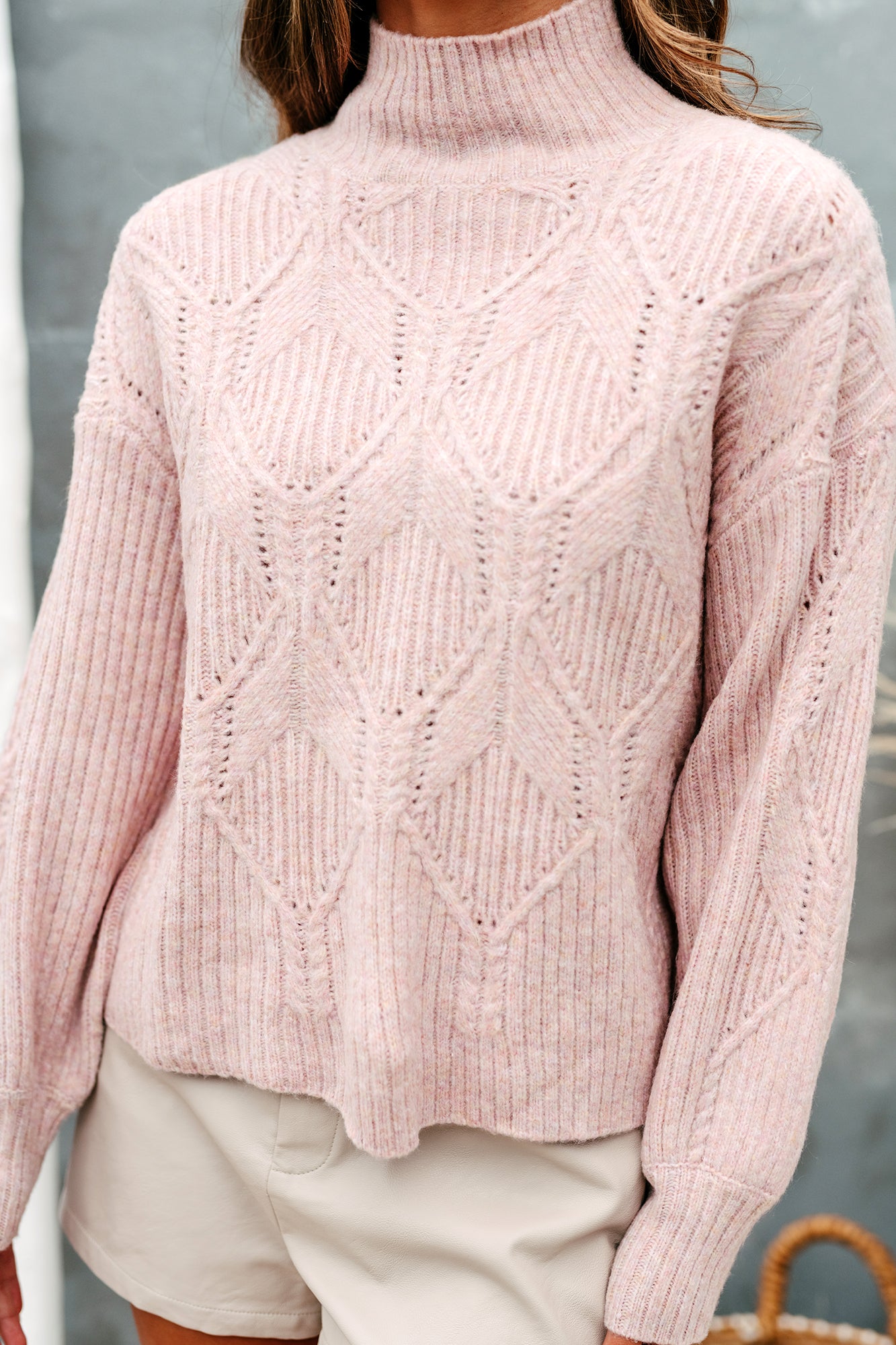 Keep The Chill Away With This Blush, Mock Necked, Cable Knit Sweater!