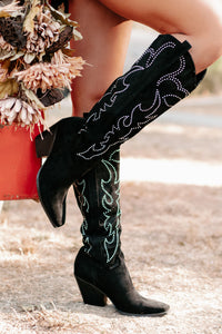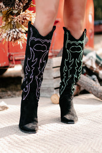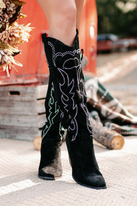 Celara Faux Suede Studded Billini Cowboy Boots (Black Suede)