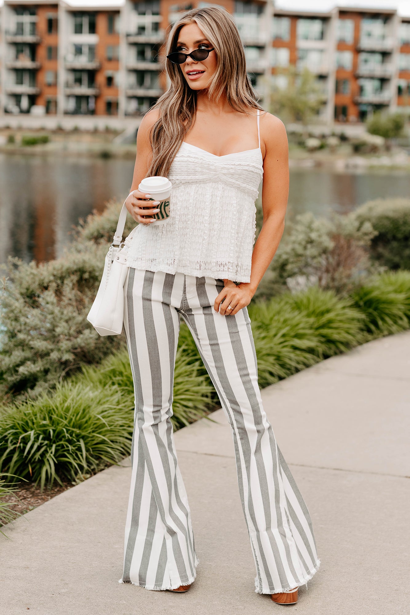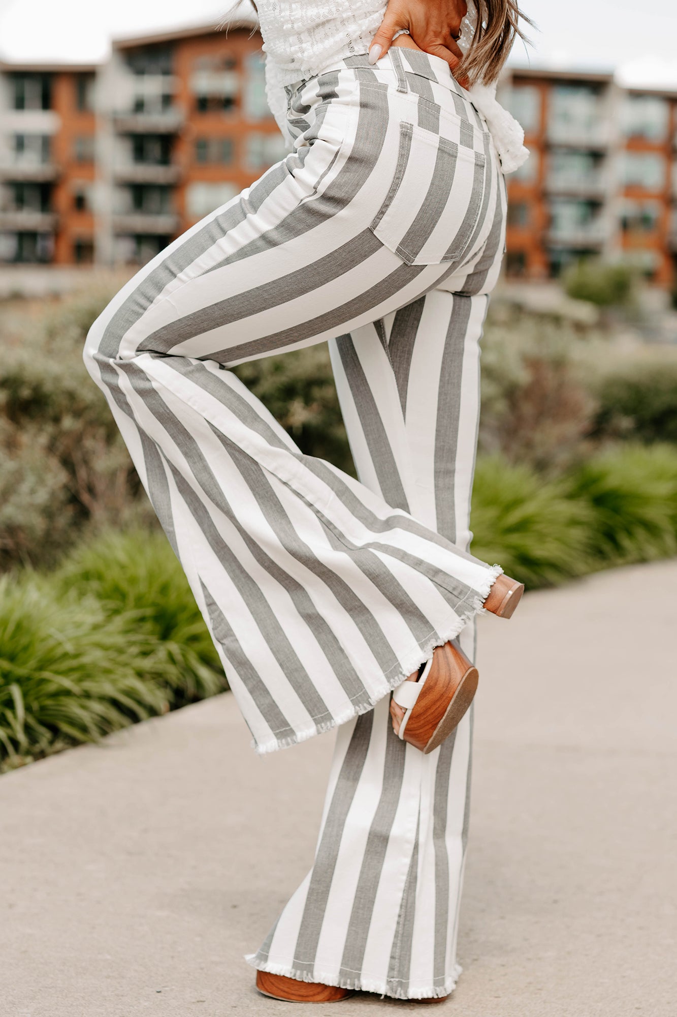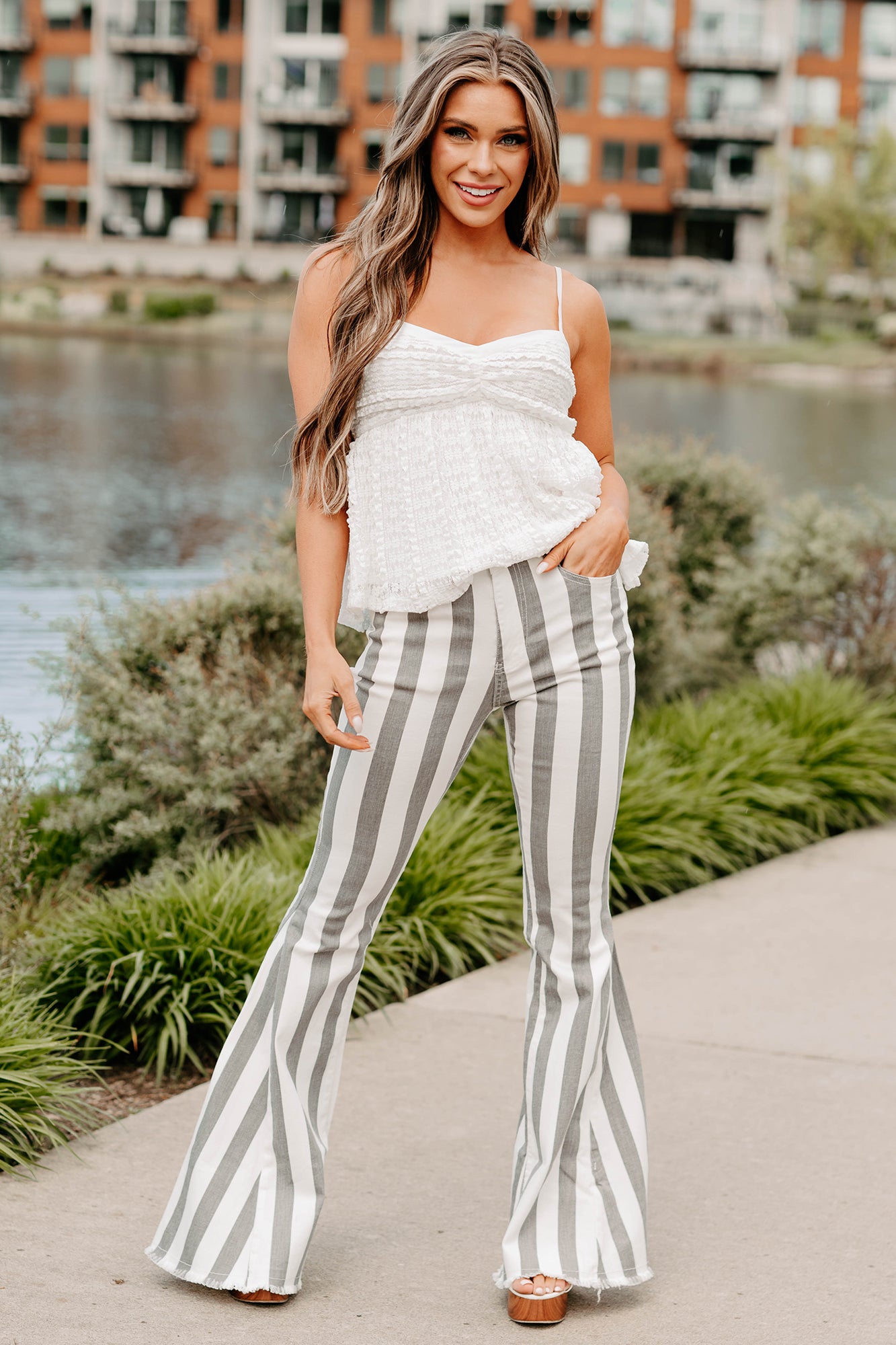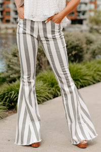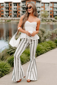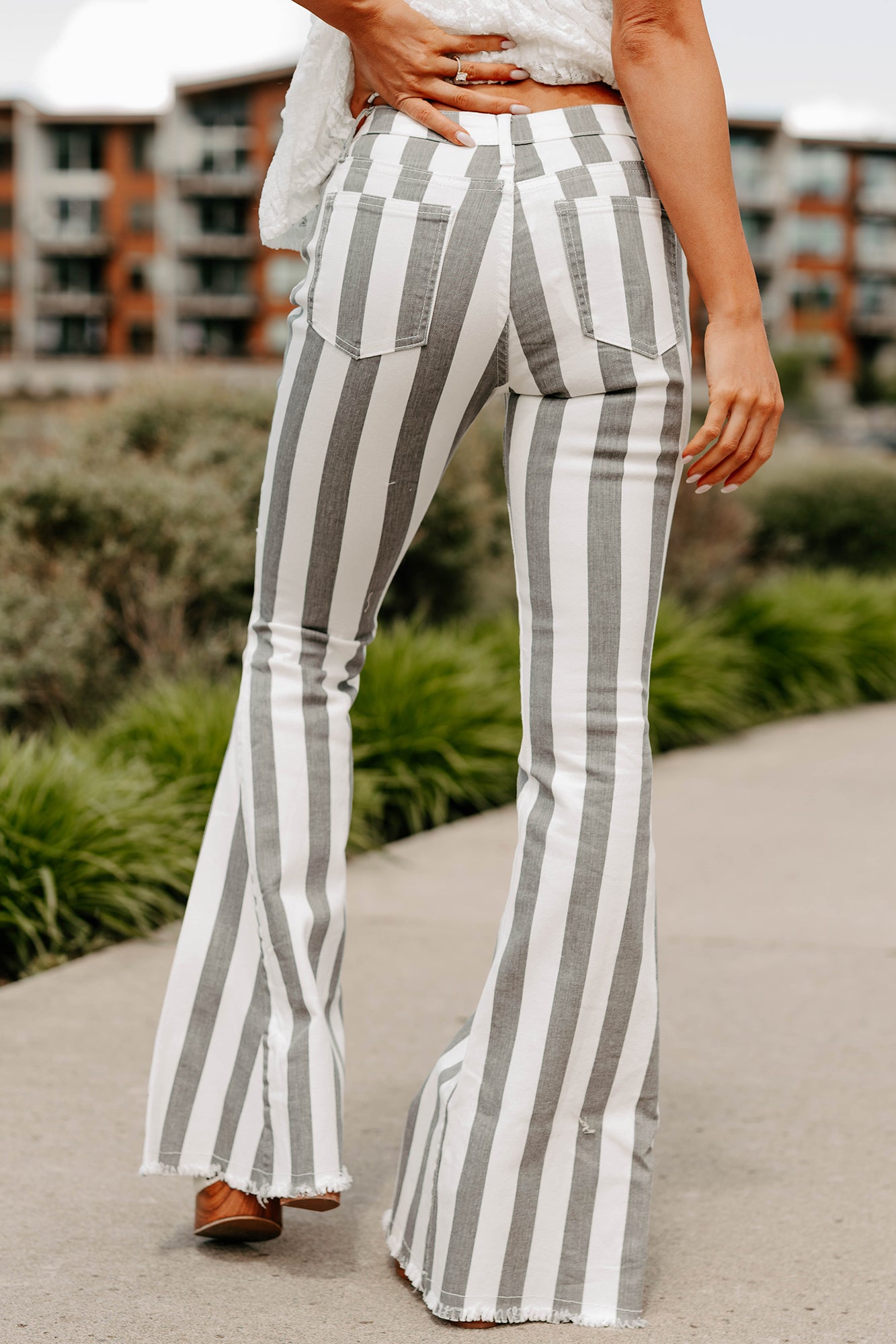 Certified Flirt Striped Flare Jeans (White/Charcoal)