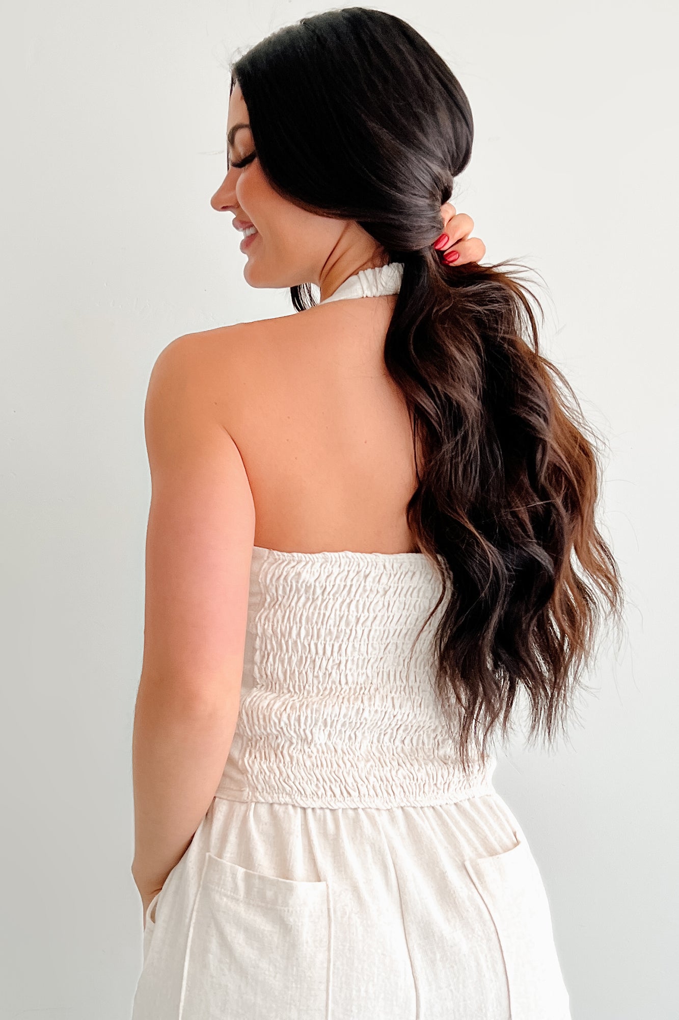 Champagne Sparkle Linen Halter Top (Oat) - NanaMacs