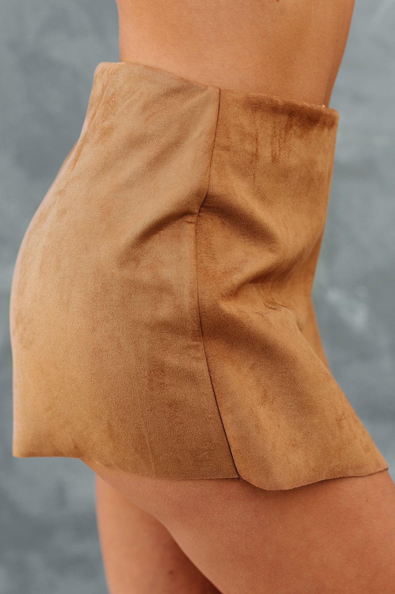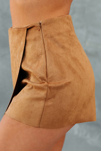 Chance At Love Faux Suede Skort (Camel) - NanaMacs
