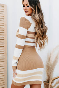 You Don't Wanna Miss Out On This Colorblock Sweater Dress! The Neutral Colors Make It Perfect For Any Occasion!