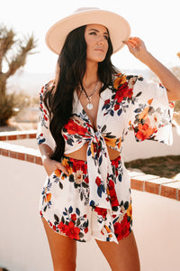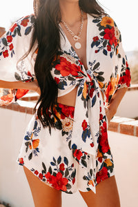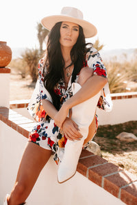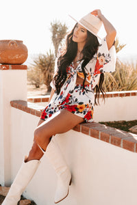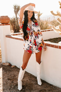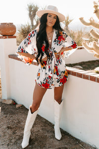This Romper Is Fun And Flowy With The Floral Print And Kimono Sleeve!