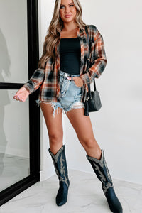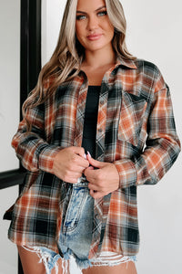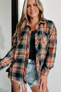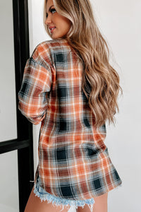 Chats By The Fire Oversized Plaid Shirt (Amber/Black)