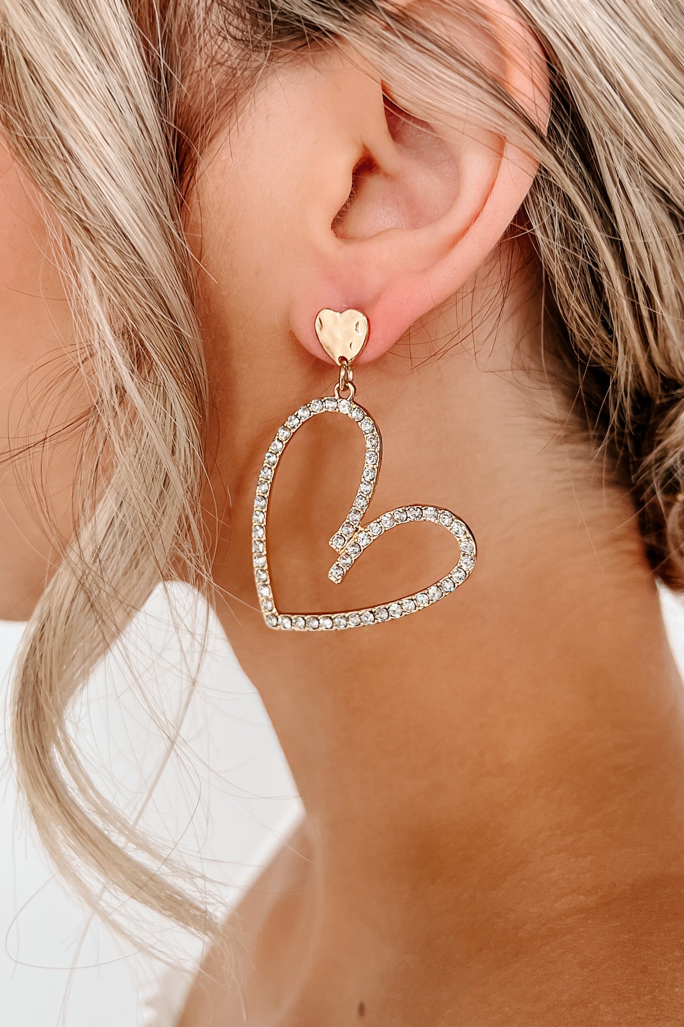 Chic Hearts Rhinestone Heart Dangle Earrings (Gold)