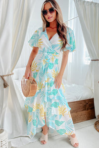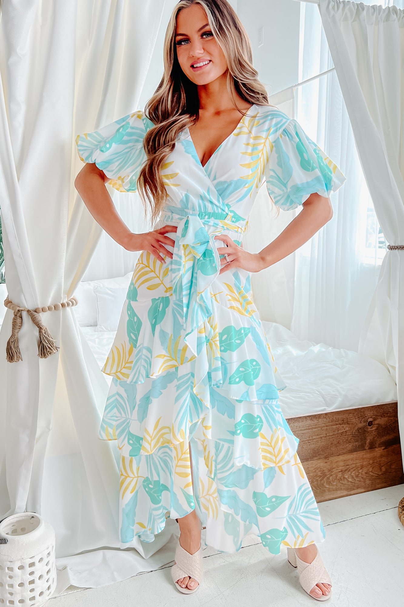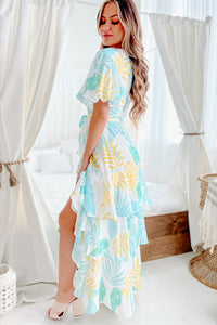 This Dress Is Total Vacation Vibes With The Tropical Print And Tiered, Ruffle Hem!