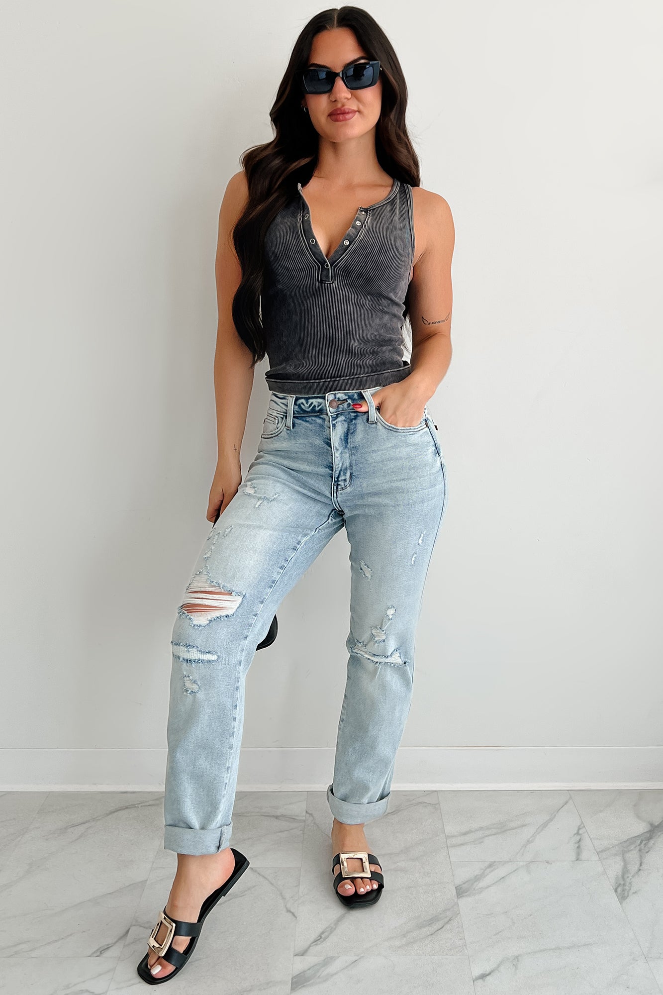 Chill Intentions Ribbed Washed Zenana Henley Tank (Ash Black)