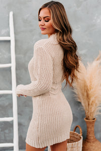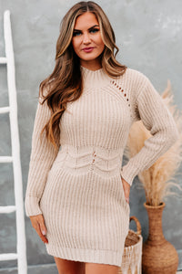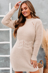 This Ecru Sweater Dress Is Just A Step Above The Basic Sweater Dress With The Chevron Waist Detail!