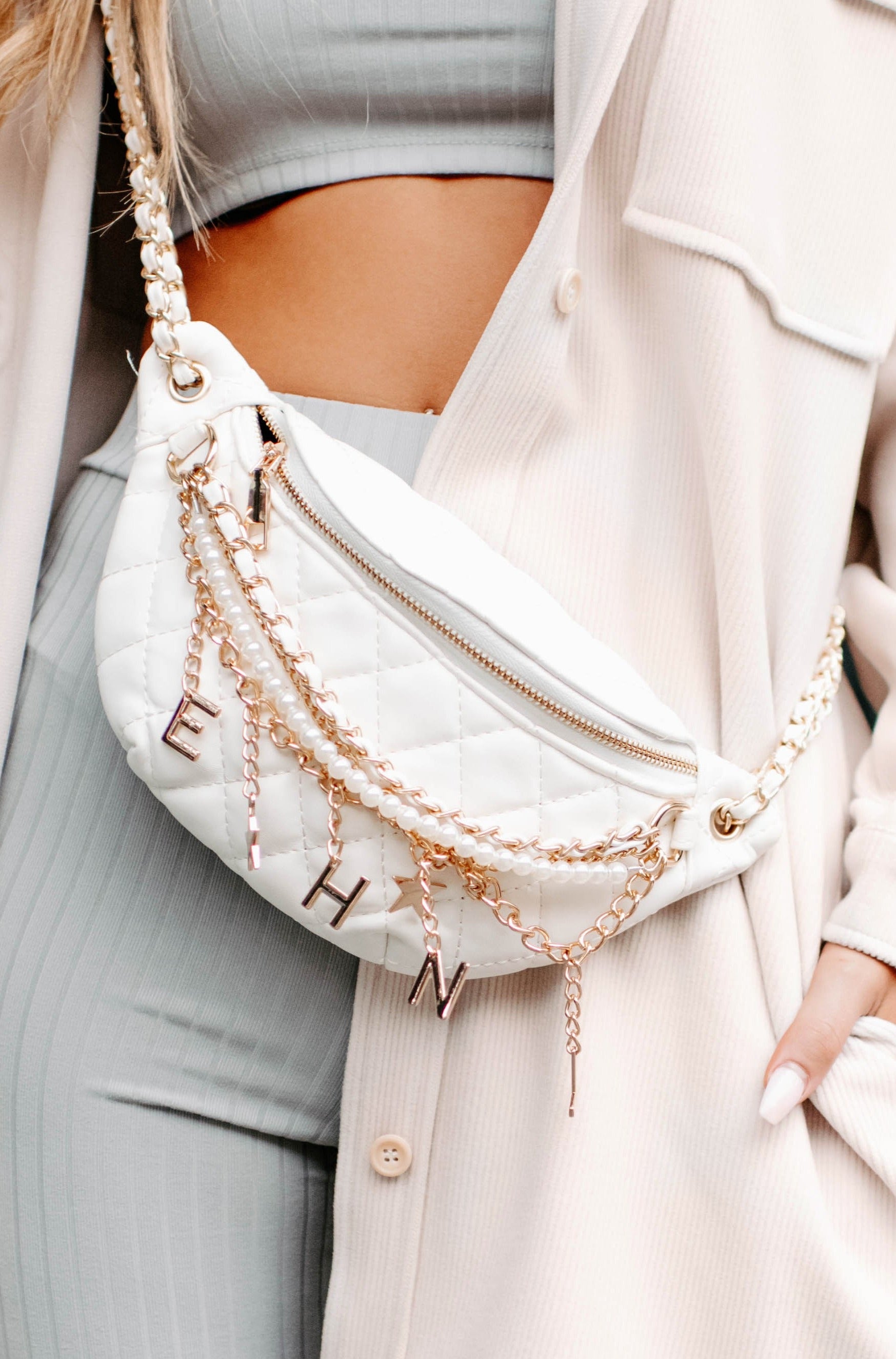 There's So Much To Love About This Quilted Crossbody! It's Got A Multi-Layered Chain With Pearls, Mixed Chains, & Charms!