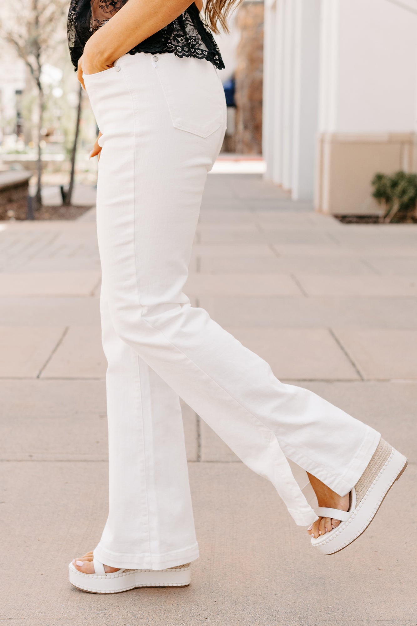 Claudette High Rise Flare Judy Blue Jeans (White) - NanaMacs