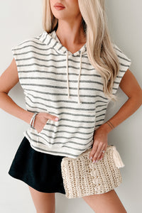 Cloud Kiss Short Sleeve Stripe Hoodie (Black/Cream)
