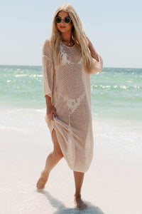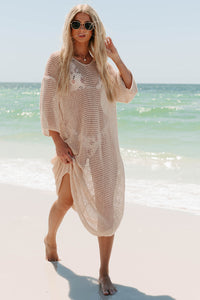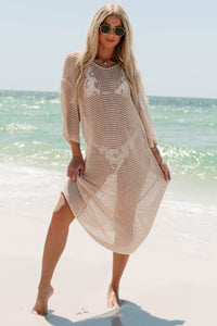 Collecting Seashells 3/4 Sleeve Crochet Swim Cover (Oatmeal)