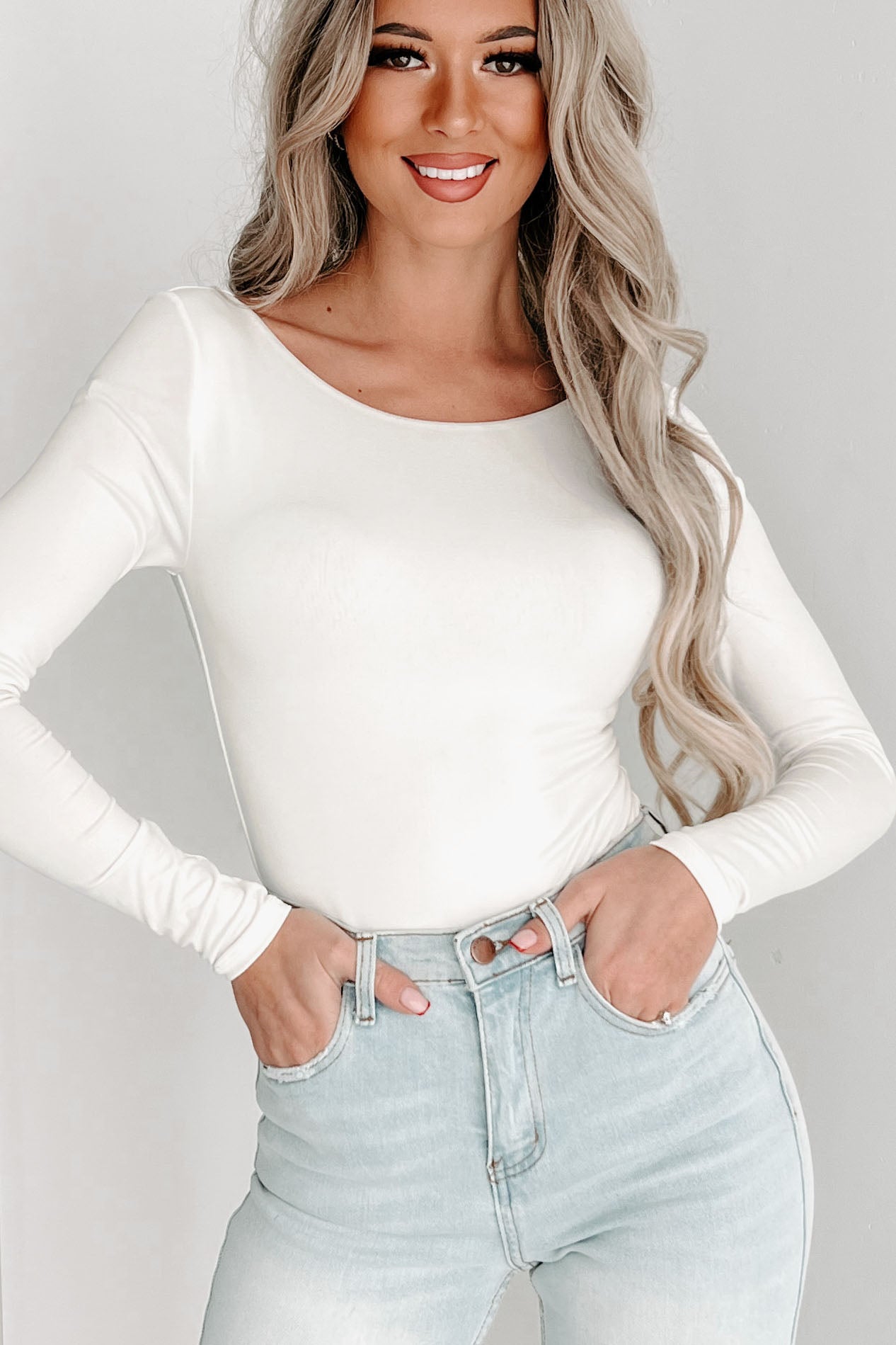 Colleen NanaMacs Original Scoop Back Long Sleeve Bodysuit (Cream) - NanaMacs