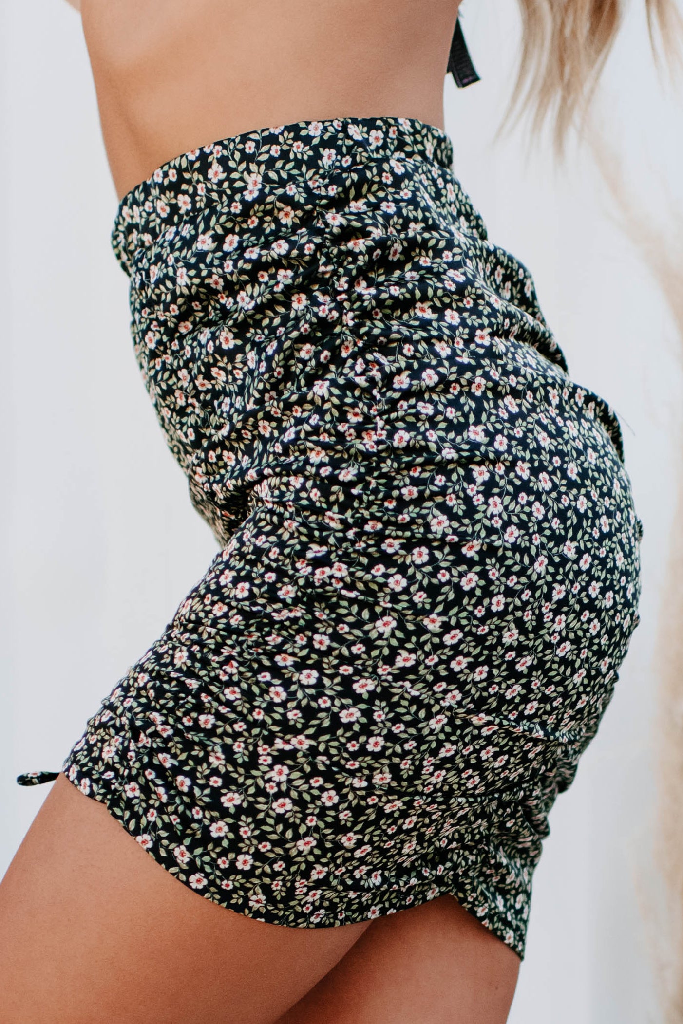 Coming Up Floral Ruched Mini Skirt (Black) - NanaMacs
