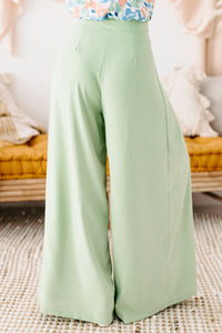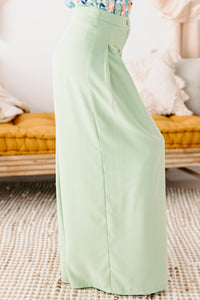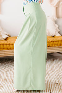 These Sage, High Waisted, Pleated, Wide Leg Pants Are Perfect For Any Occasion!