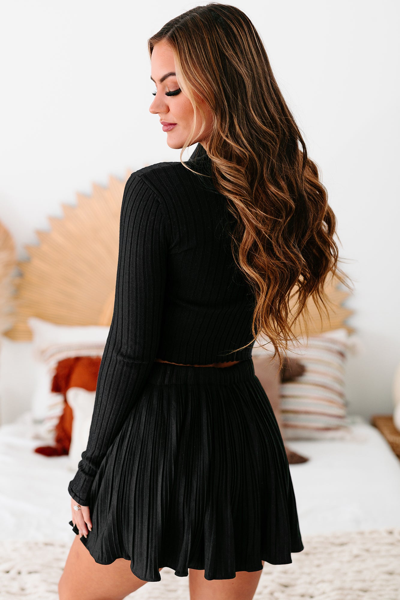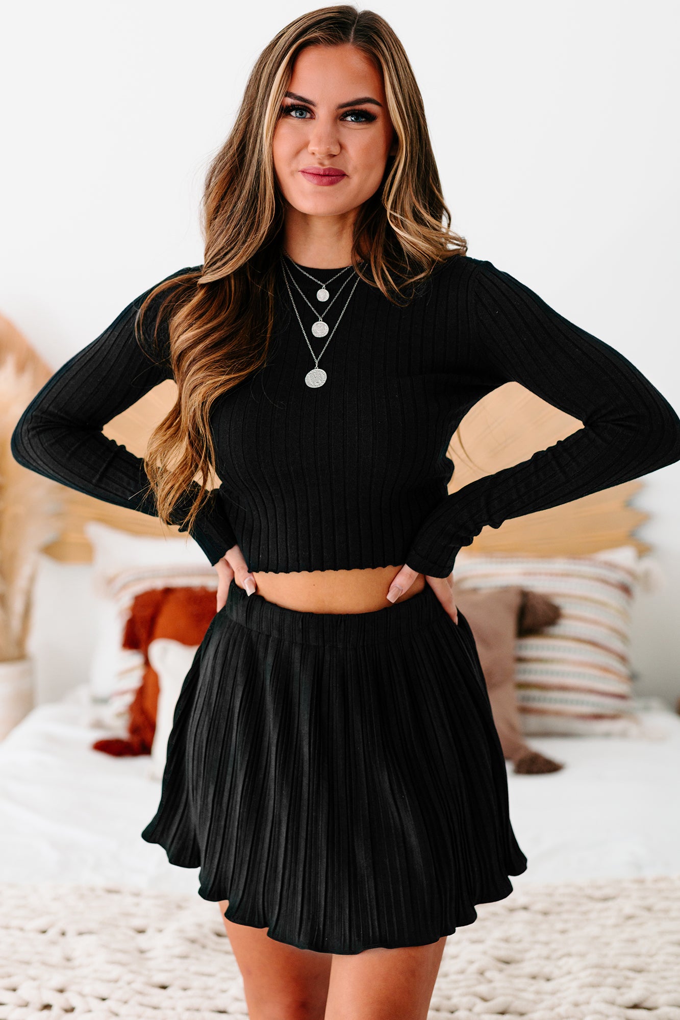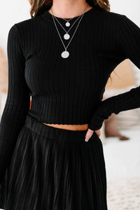 Controlled Emotions Ribbed Long Sleeve Crop Top (Black)