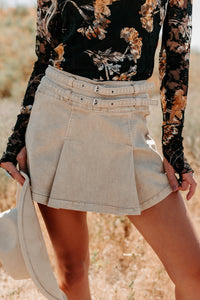 Cool, Calm & Collected Belted Denim Mini Skirt (Khaki)