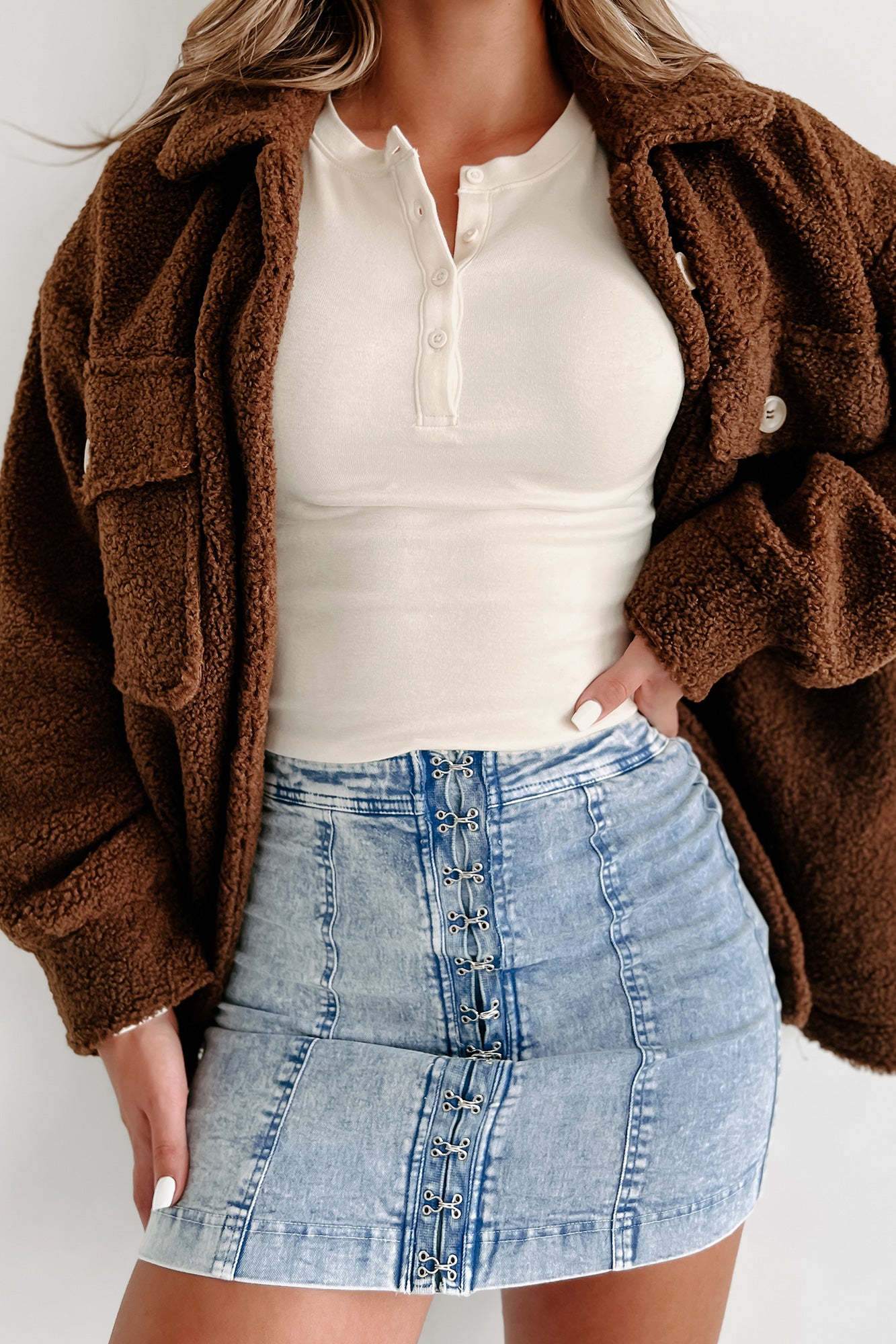 Cool Weather Crowd Long Sleeve Henley Top (Cream)