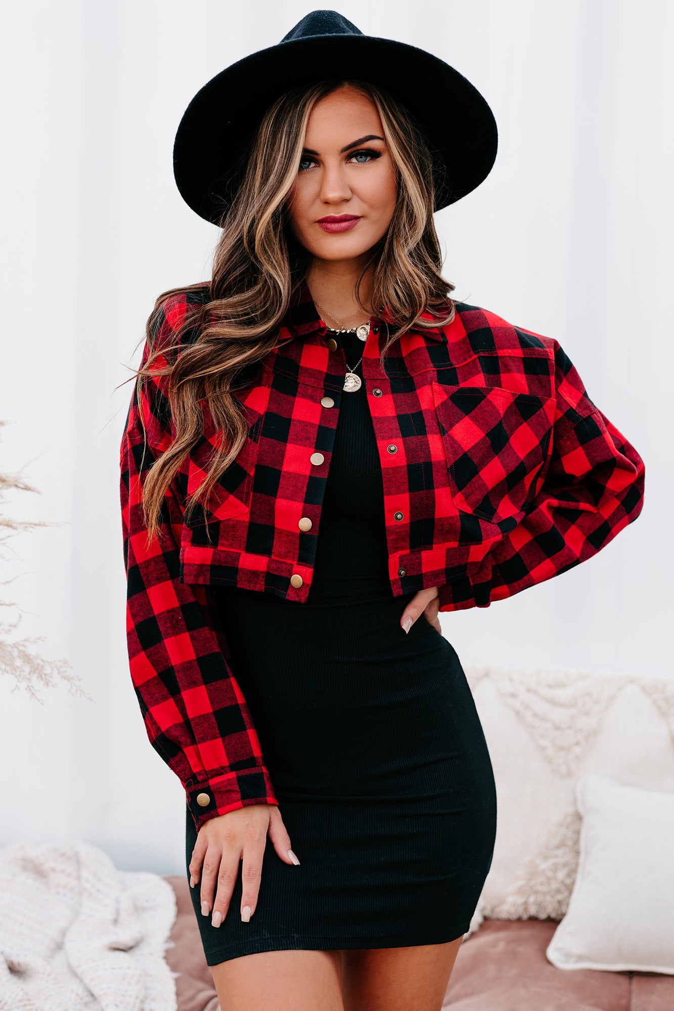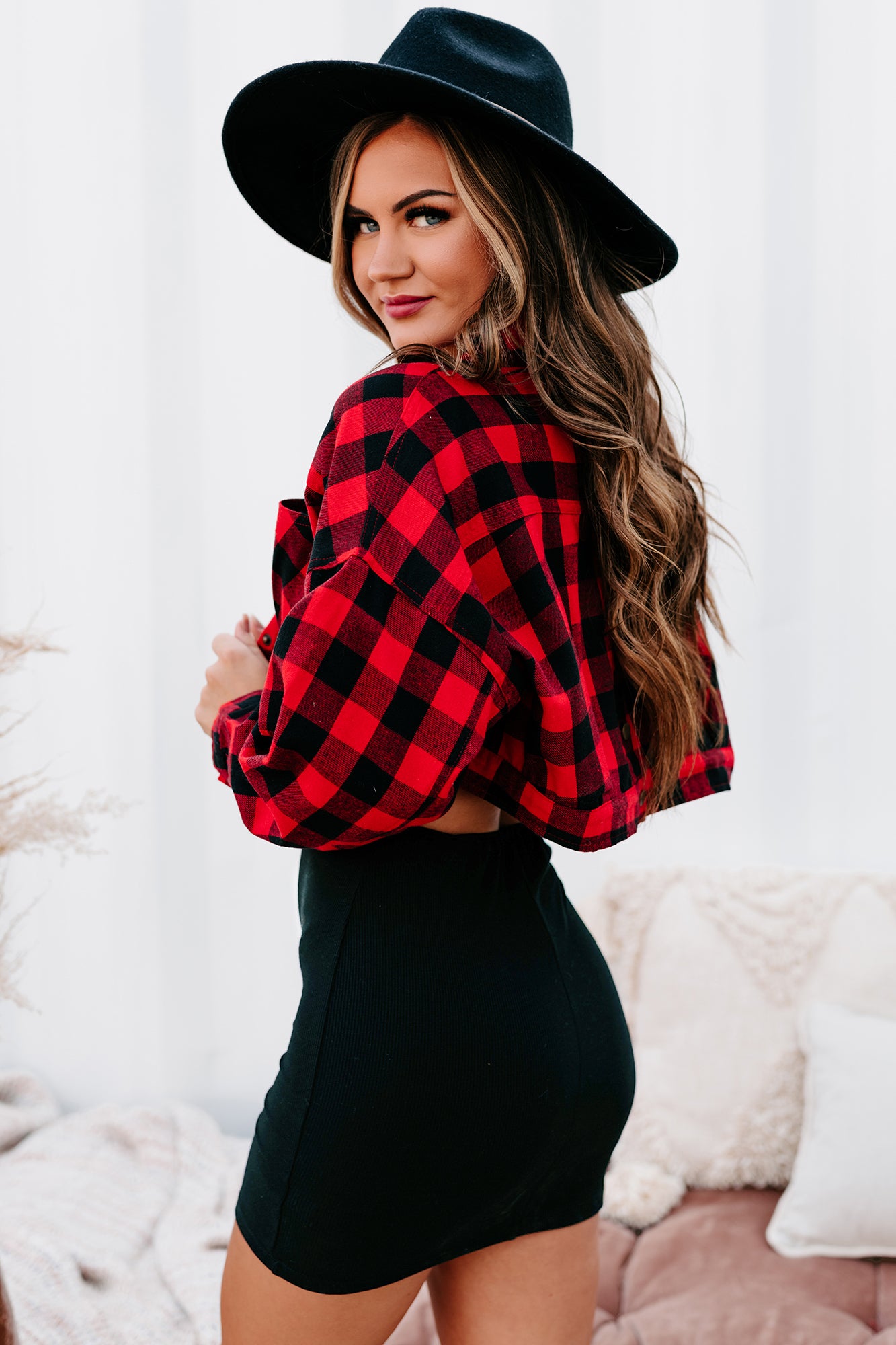 Be Picture Perfect In This Red & Black, Cropped, Plaid Top!